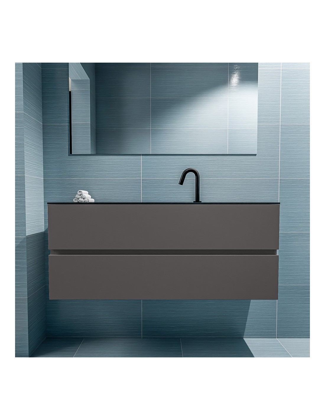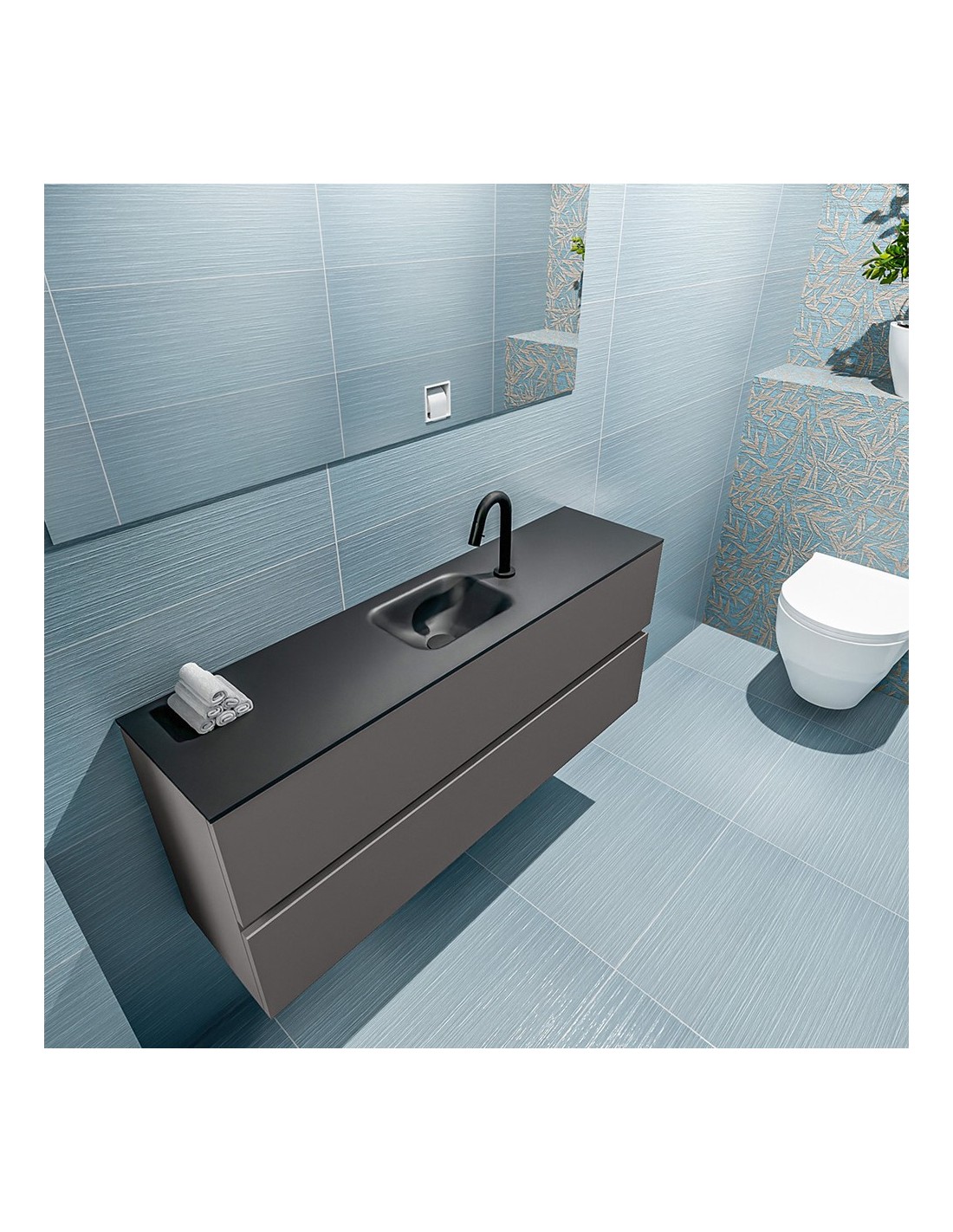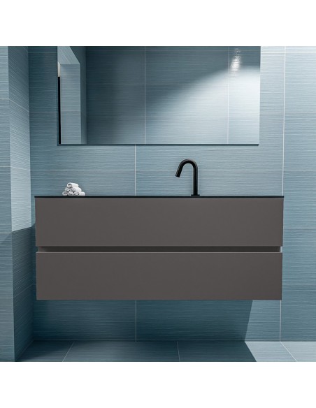 ADA Komplet badmiljø centreret håndvask B120 x H50 cm MDF - Mørkegrå/Sort