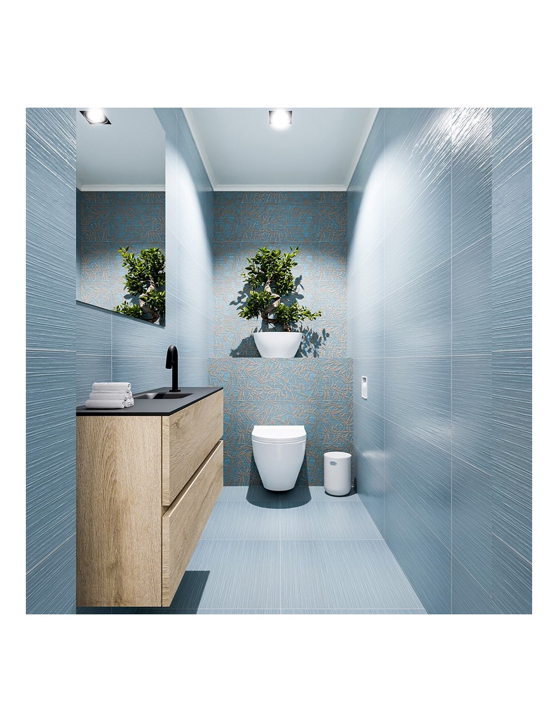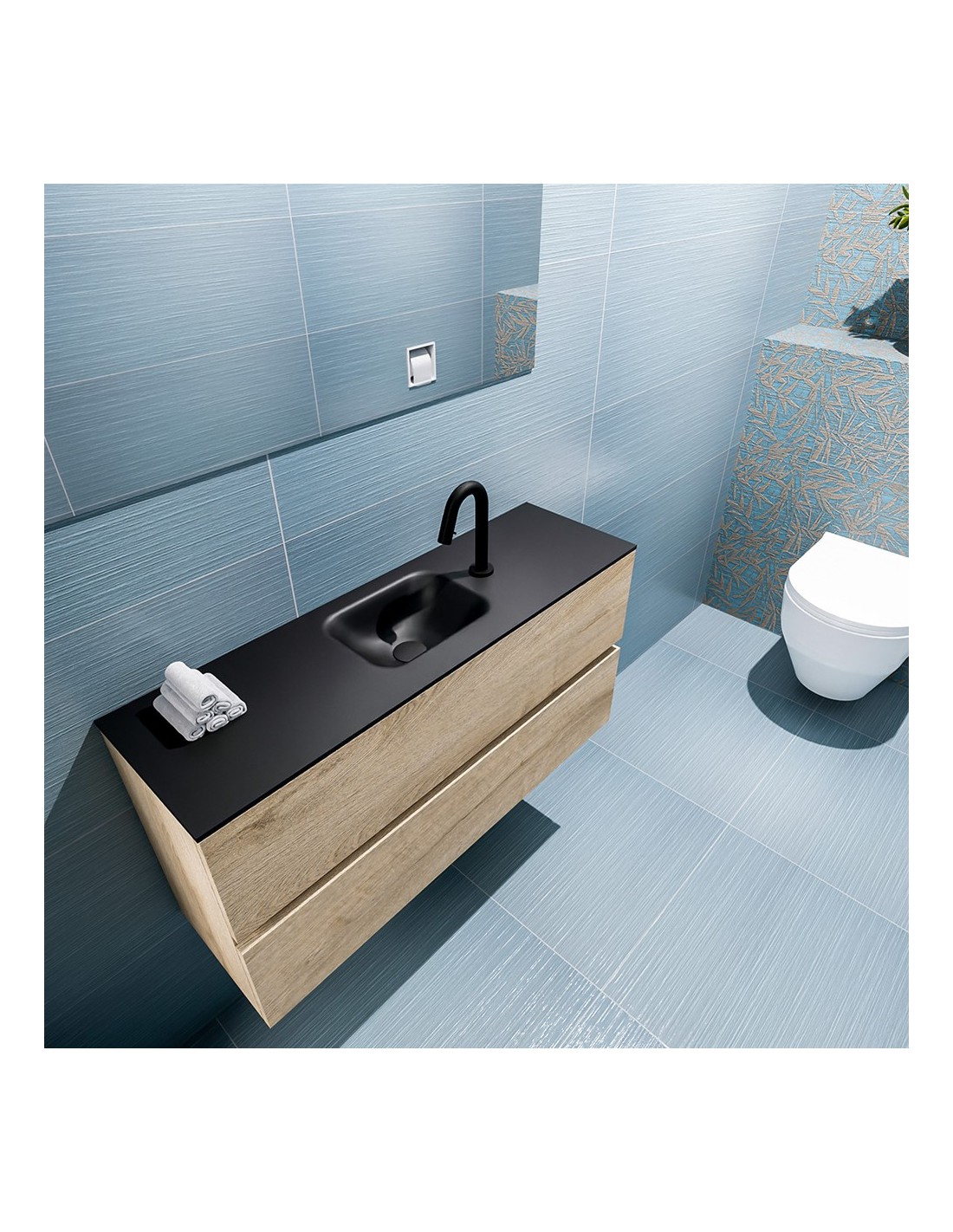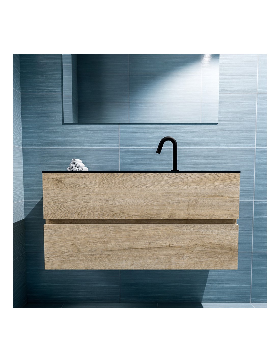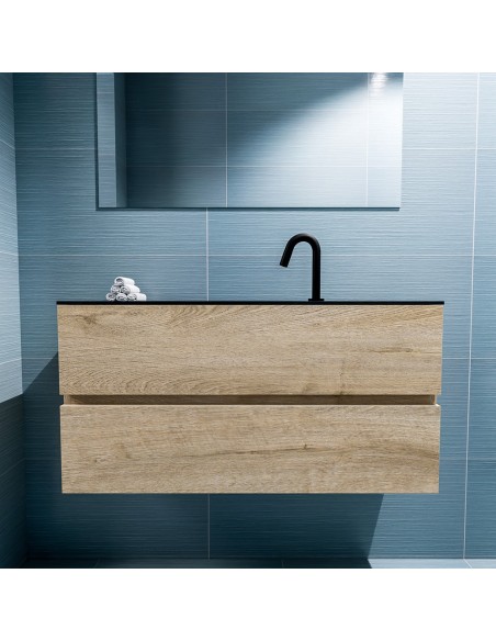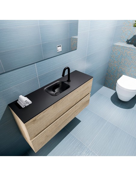 ADA Komplet badmiljø centreret håndvask B100 x H50 cm MDF - Vasket eg/Sort
