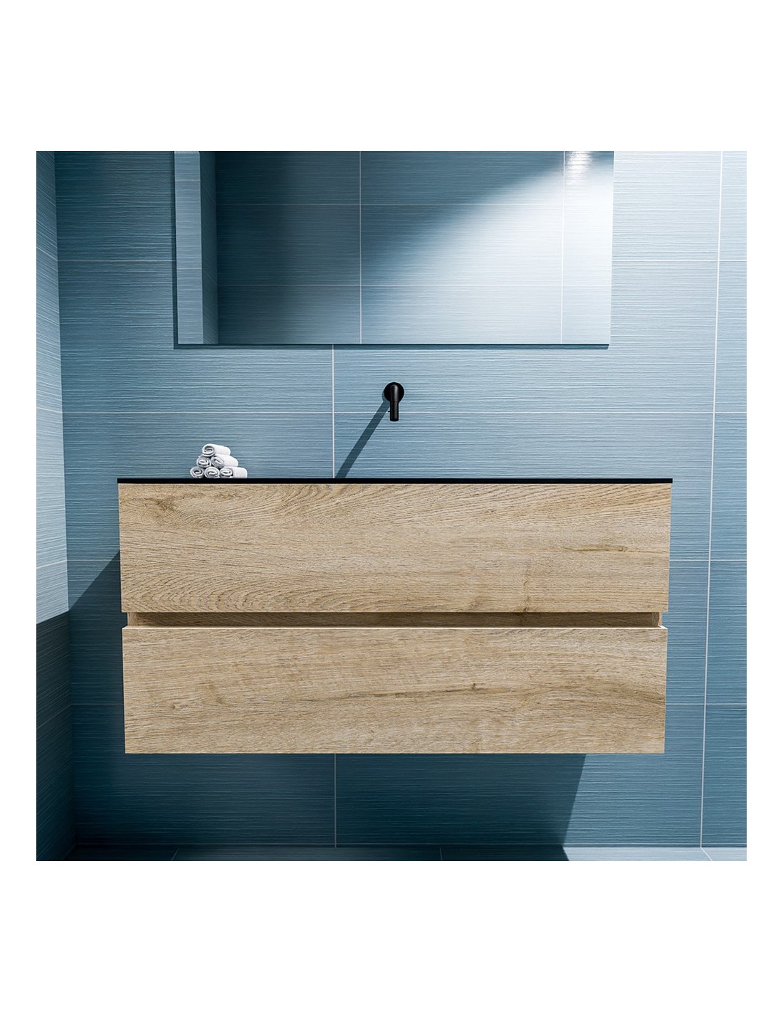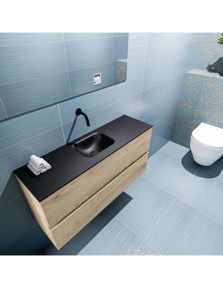 ADA Komplet badmiljø centreret håndvask B100 x H50 cm MDF - Vasket eg/Sort