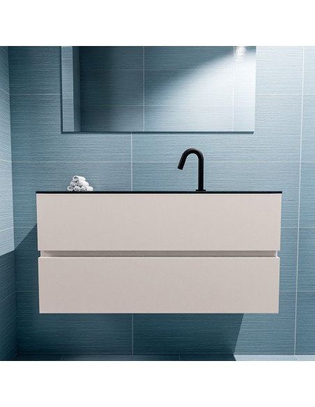 ADA Komplet badmiljø centreret håndvask B100 x H50 cm MDF - Linned/Sort
