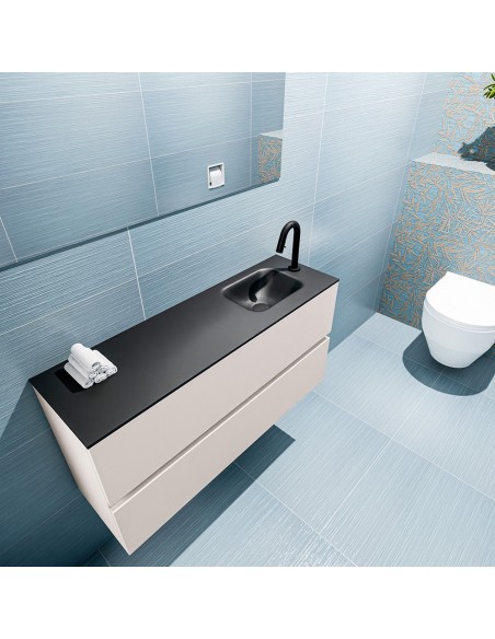 ADA Komplet badmiljø højrevendt håndvask B100 x H50 cm MDF - Linned/Sort