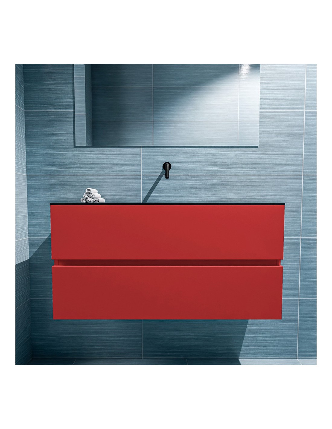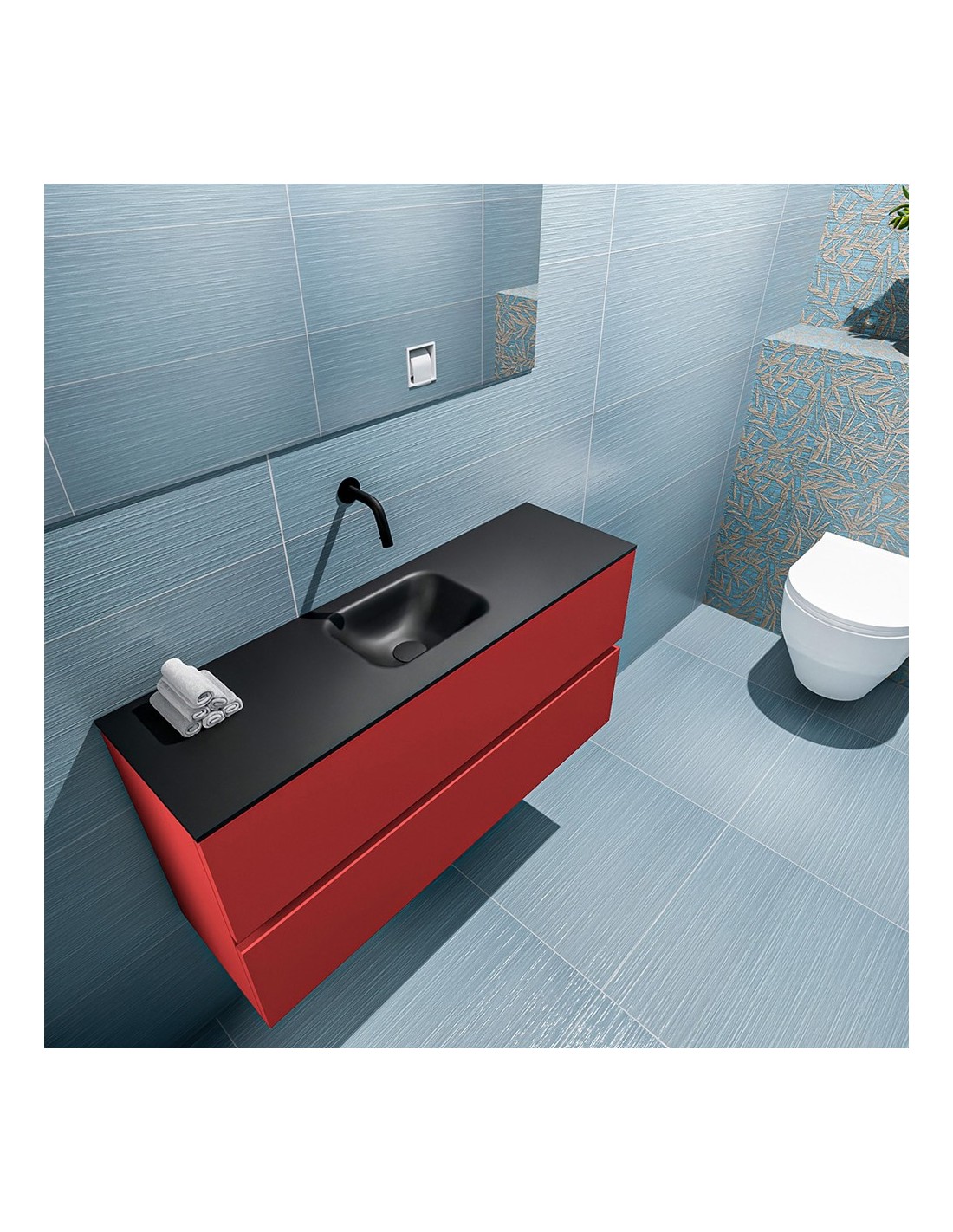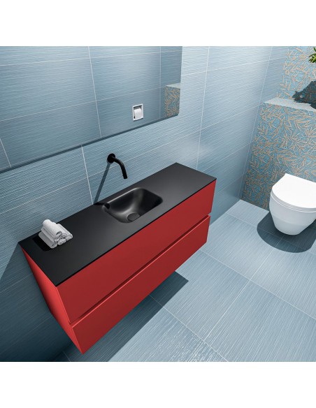 ADA Komplet badmiljø centreret håndvask B100 x H50 cm MDF - Rød/Sort