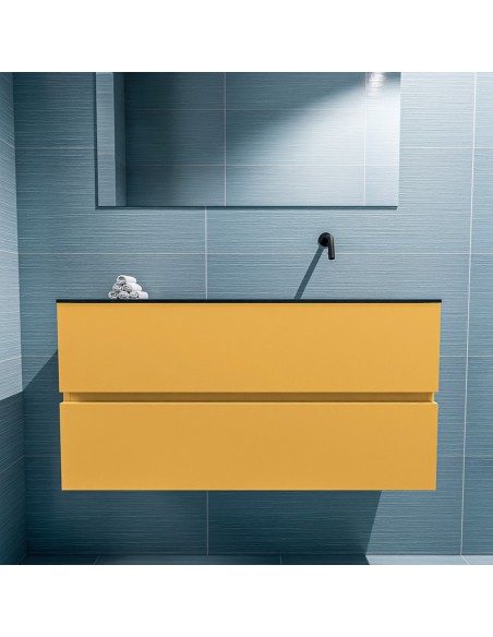 ADA Komplet badmiljø højrevendt håndvask B100 x H50 cm MDF - Okker/Sort