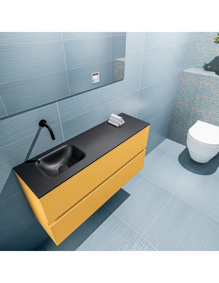 ADA Komplet badmiljø venstrevendt håndvask B100 x H50 cm MDF - Okker/Sort