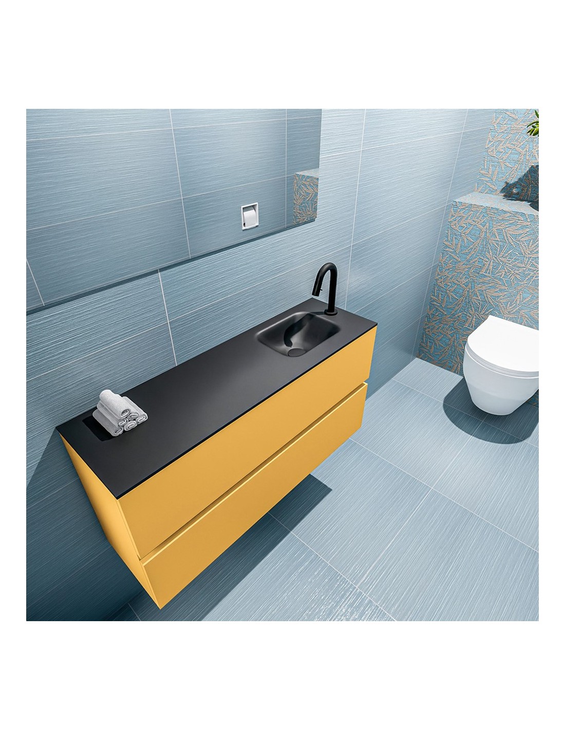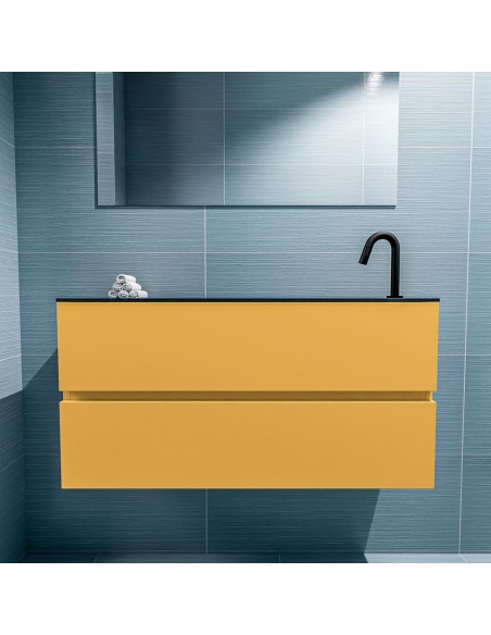 ADA Komplet badmiljø højrevendt håndvask B100 x H50 cm MDF - Okker/Sort