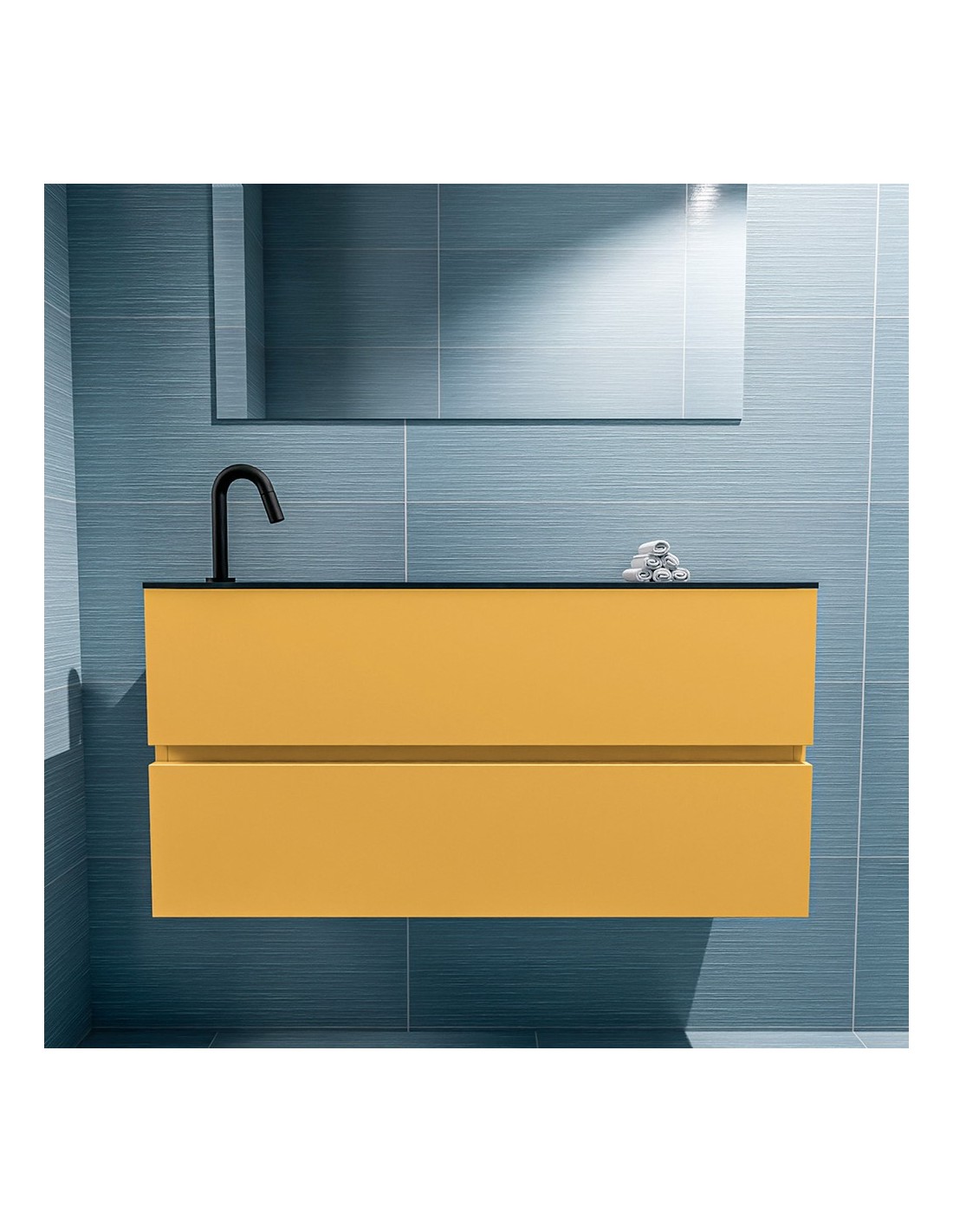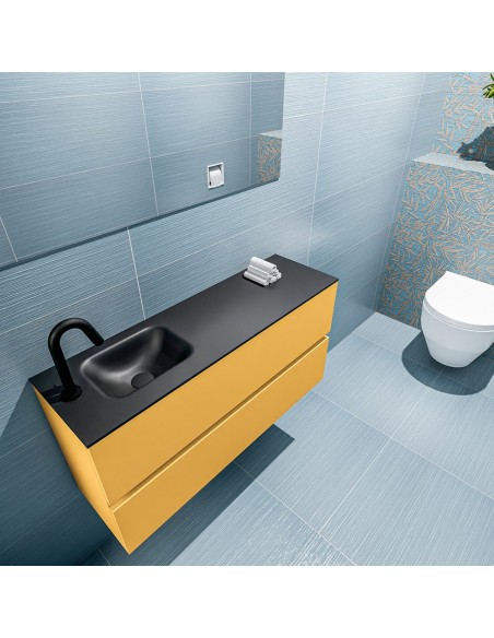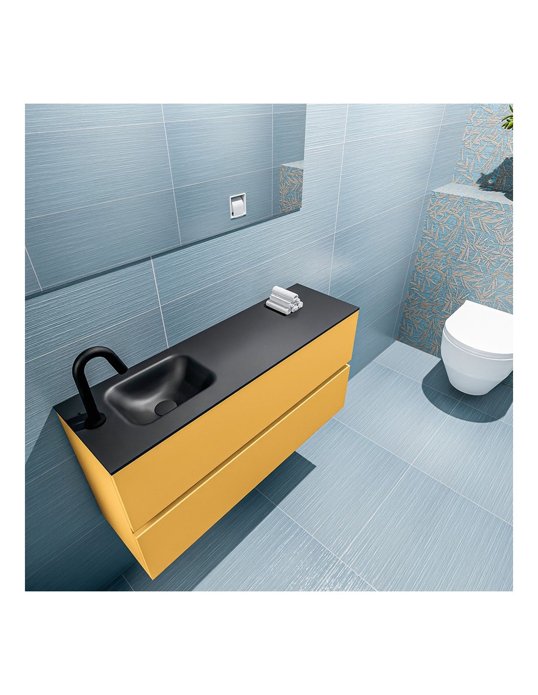 ADA Komplet badmiljø venstrevendt håndvask B100 x H50 cm MDF - Okker/Sort