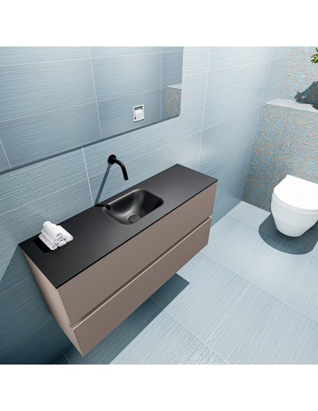 ADA Komplet badmiljø centreret håndvask B100 x H50 cm MDF - Røg/Sort