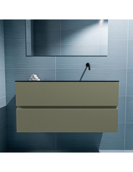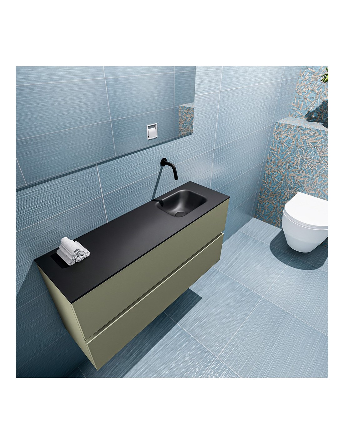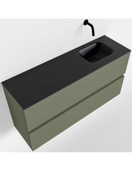 ADA Komplet badmiljø højrevendt håndvask B100 x H50 cm MDF - Armygrøn/Sort