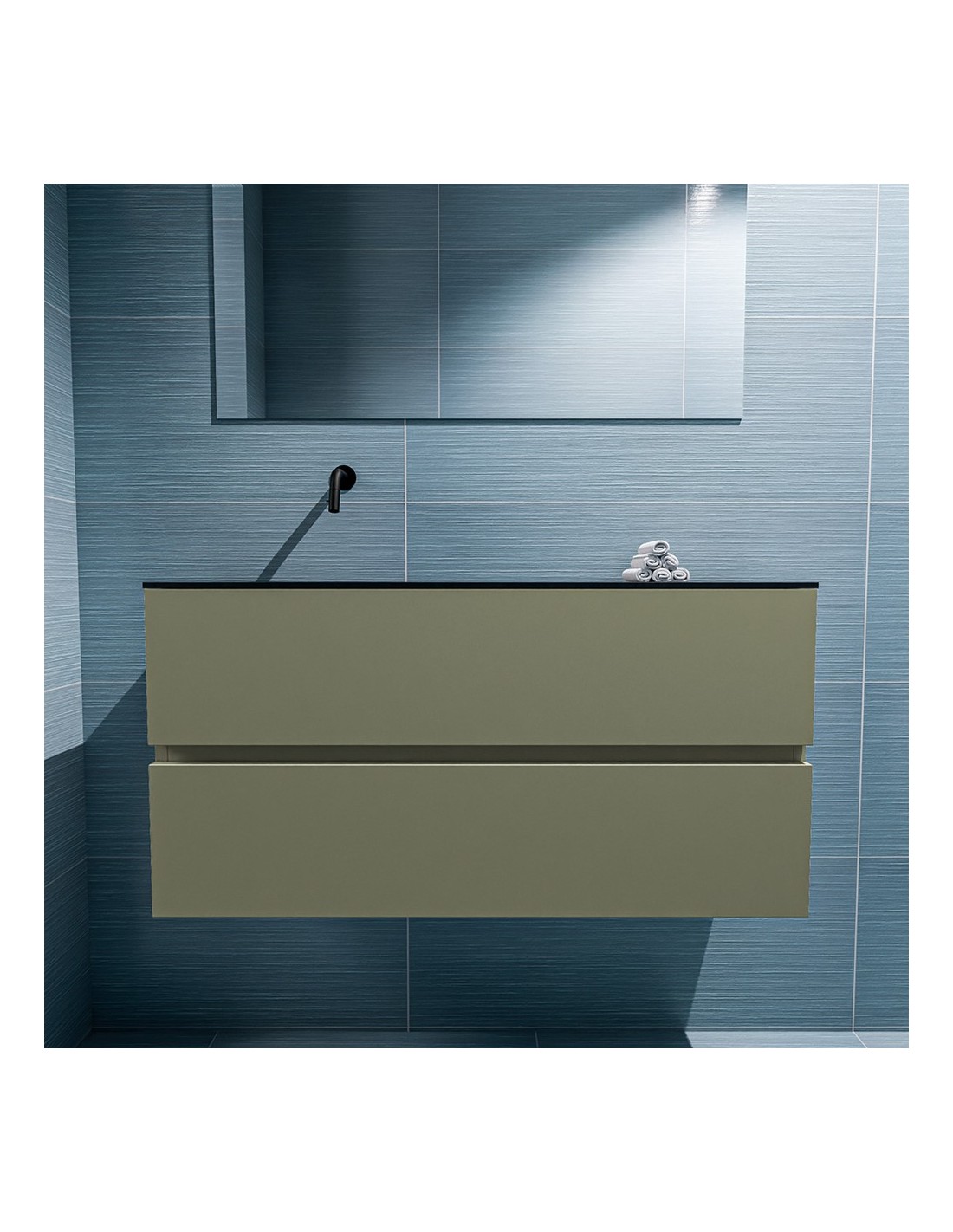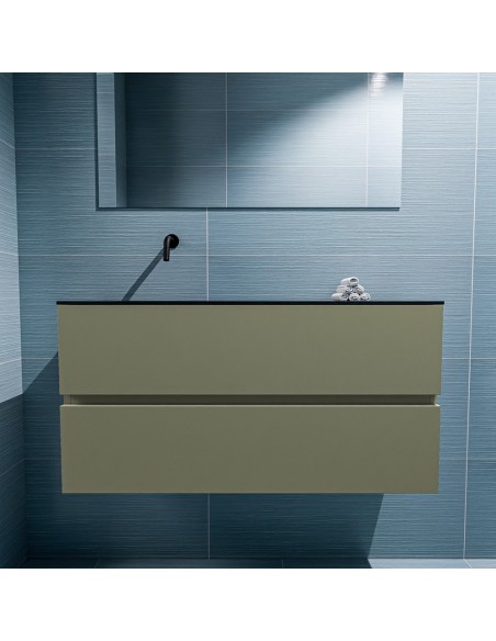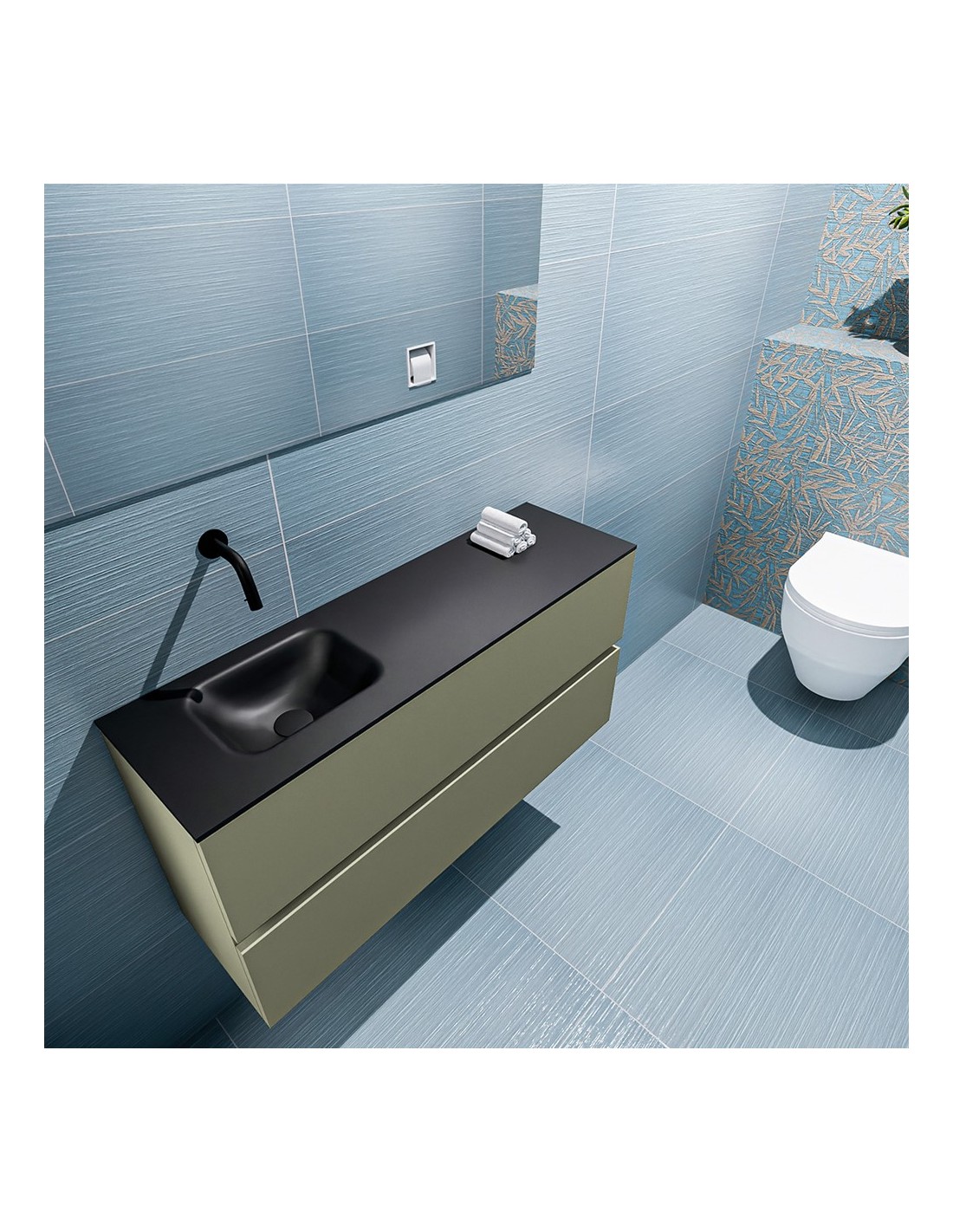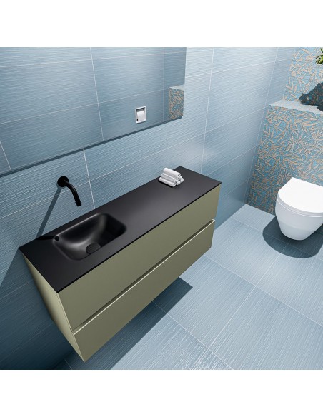 ADA Komplet badmiljø venstrevendt håndvask B100 x H50 cm MDF - Armygrøn/Sort