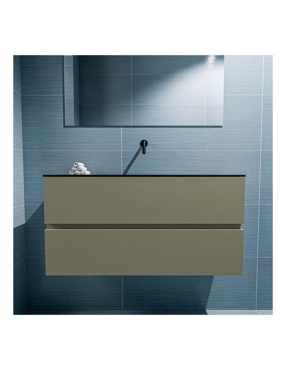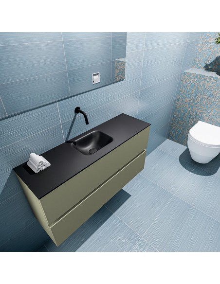 ADA Komplet badmiljø centreret håndvask B100 x H50 cm MDF - Armygrøn/Sort