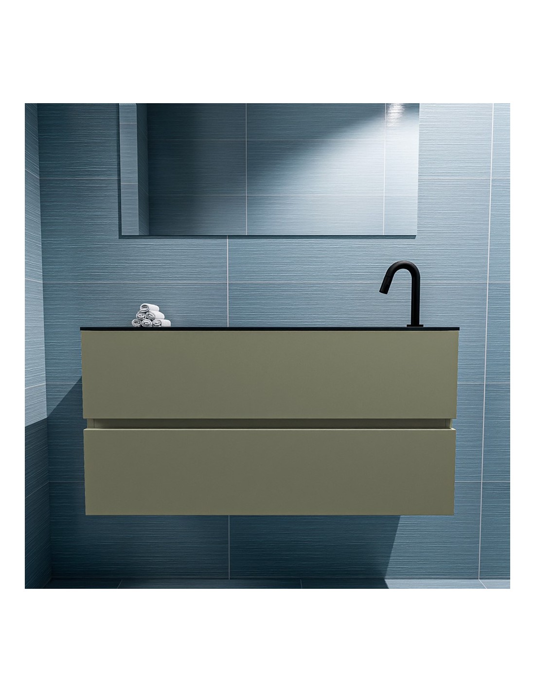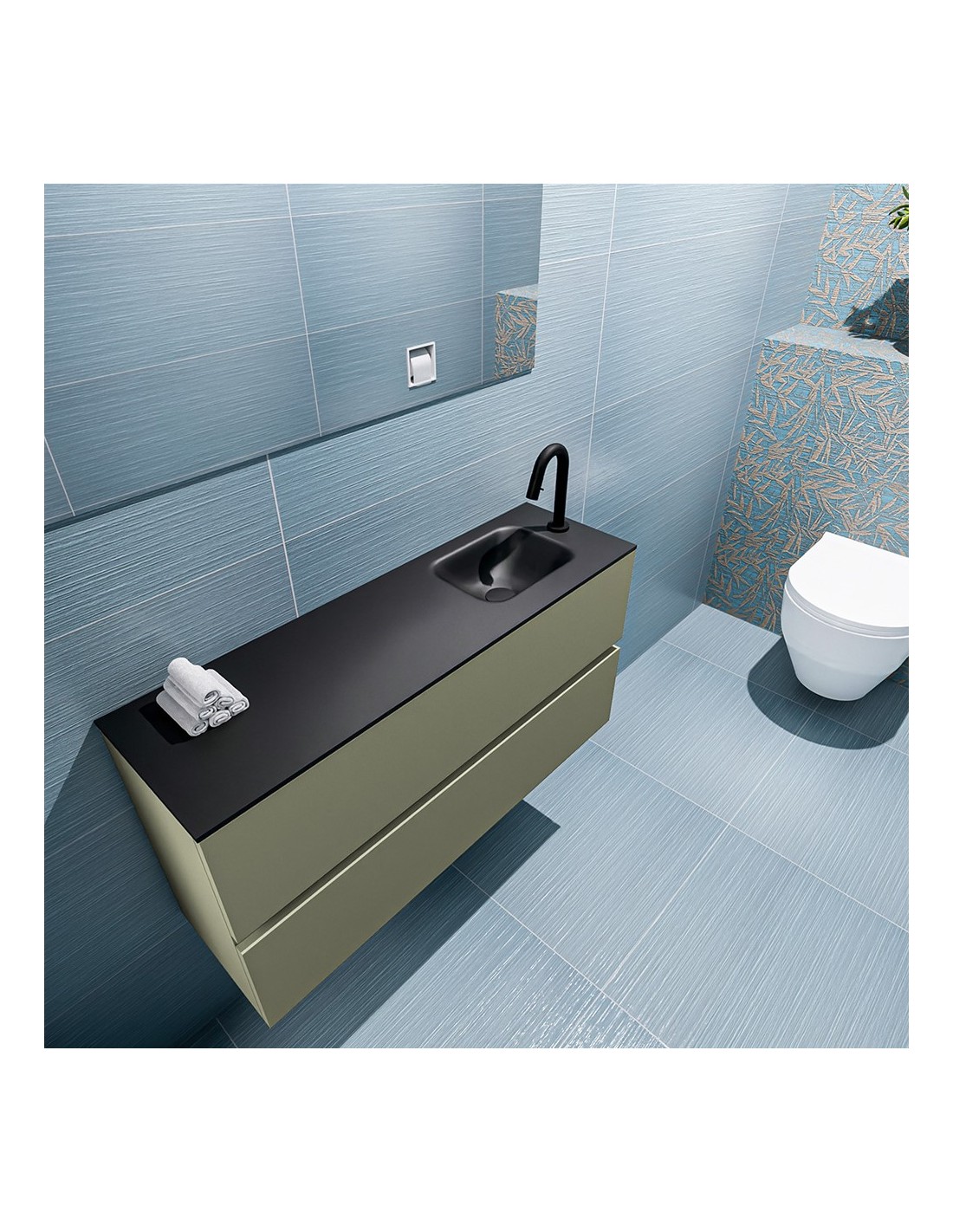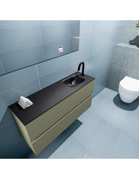 ADA Komplet badmiljø højrevendt håndvask B100 x H50 cm MDF - Armygrøn/Sort
