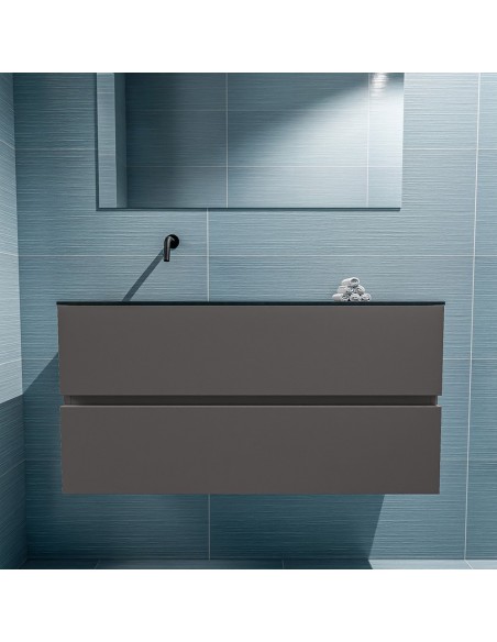 ADA Komplet badmiljø venstrevendt håndvask B100 x H50 cm MDF - Mørkegrå/Sort
