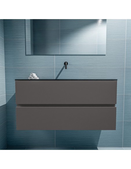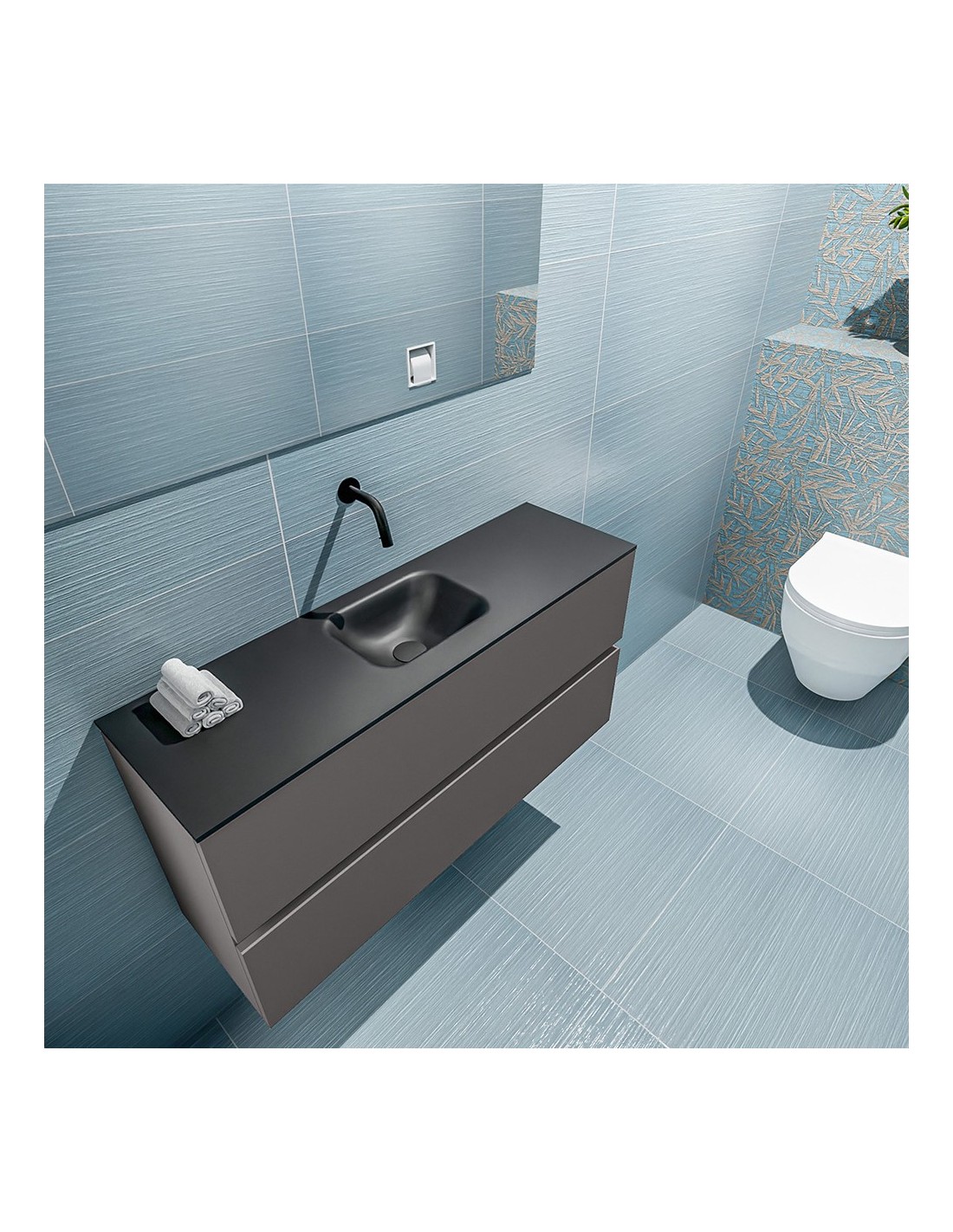 ADA Komplet badmiljø centreret håndvask B100 x H50 cm MDF - Mørkegrå/Sort