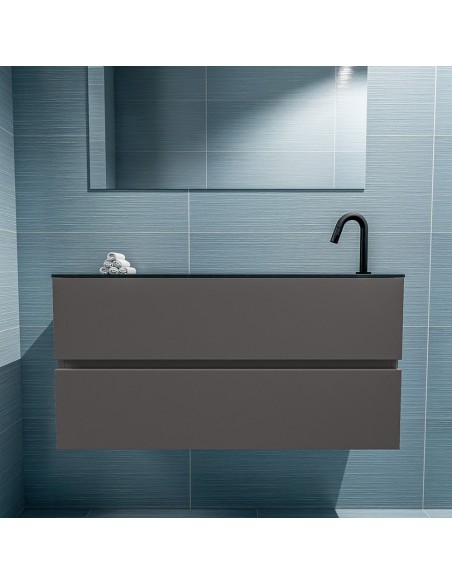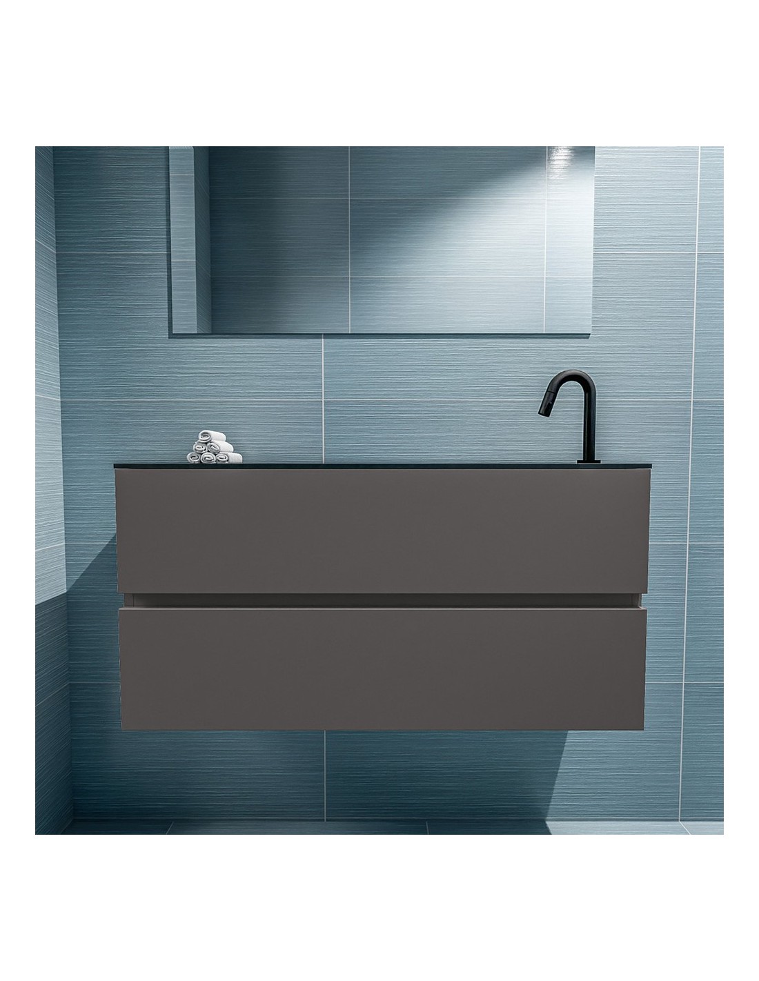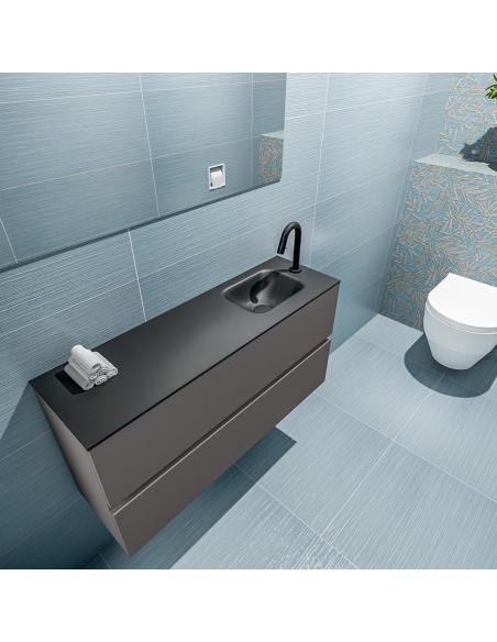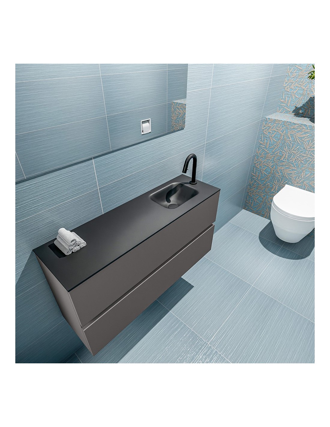 ADA Komplet badmiljø højrevendt håndvask B100 x H50 cm MDF - Mørkegrå/Sort