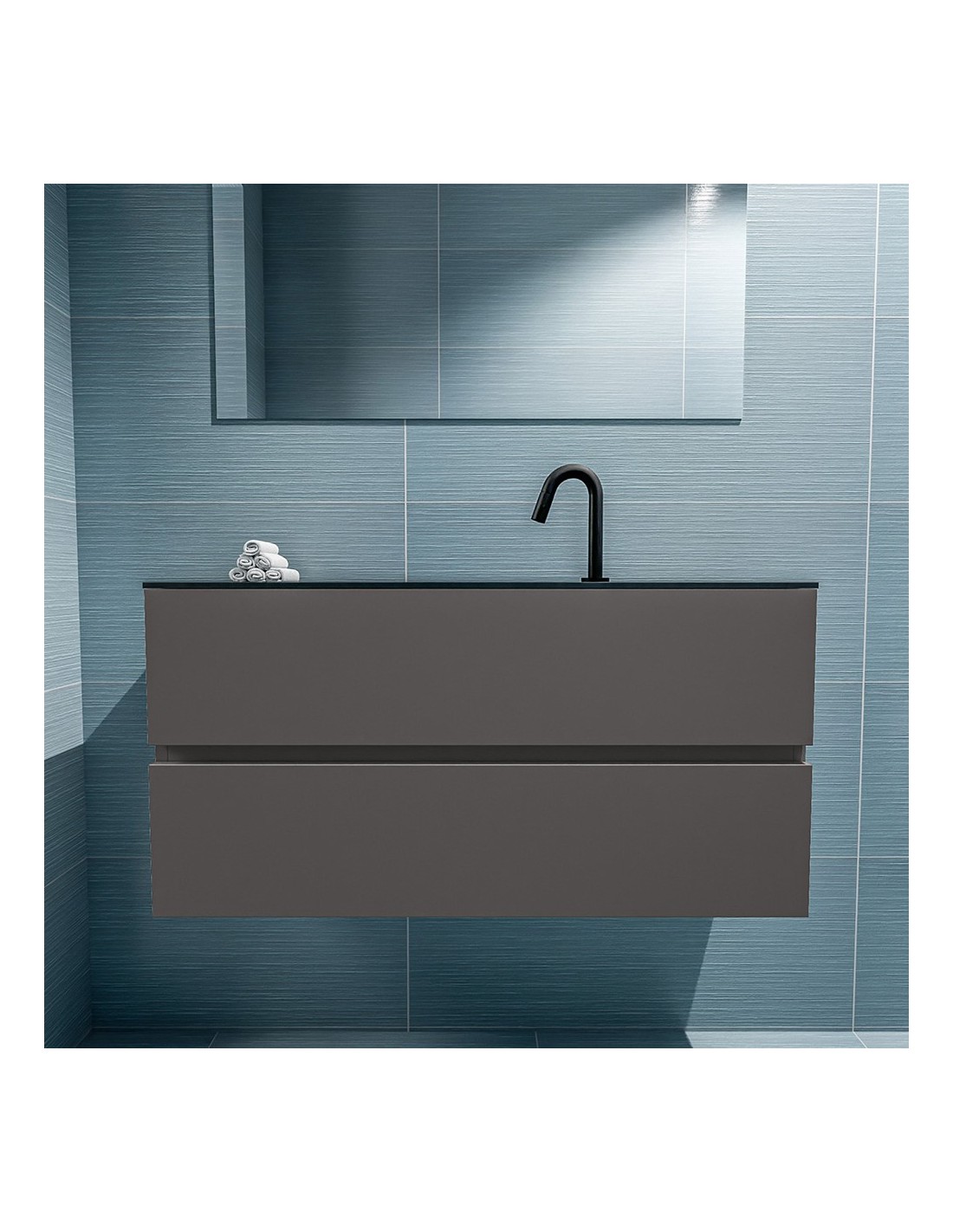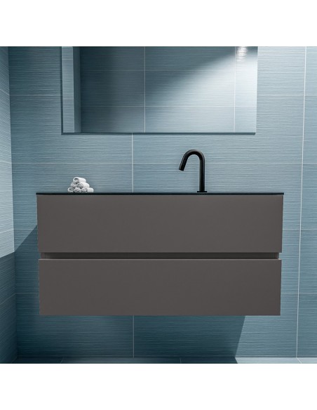 ADA Komplet badmiljø centreret håndvask B100 x H50 cm MDF - Mørkegrå/Sort
