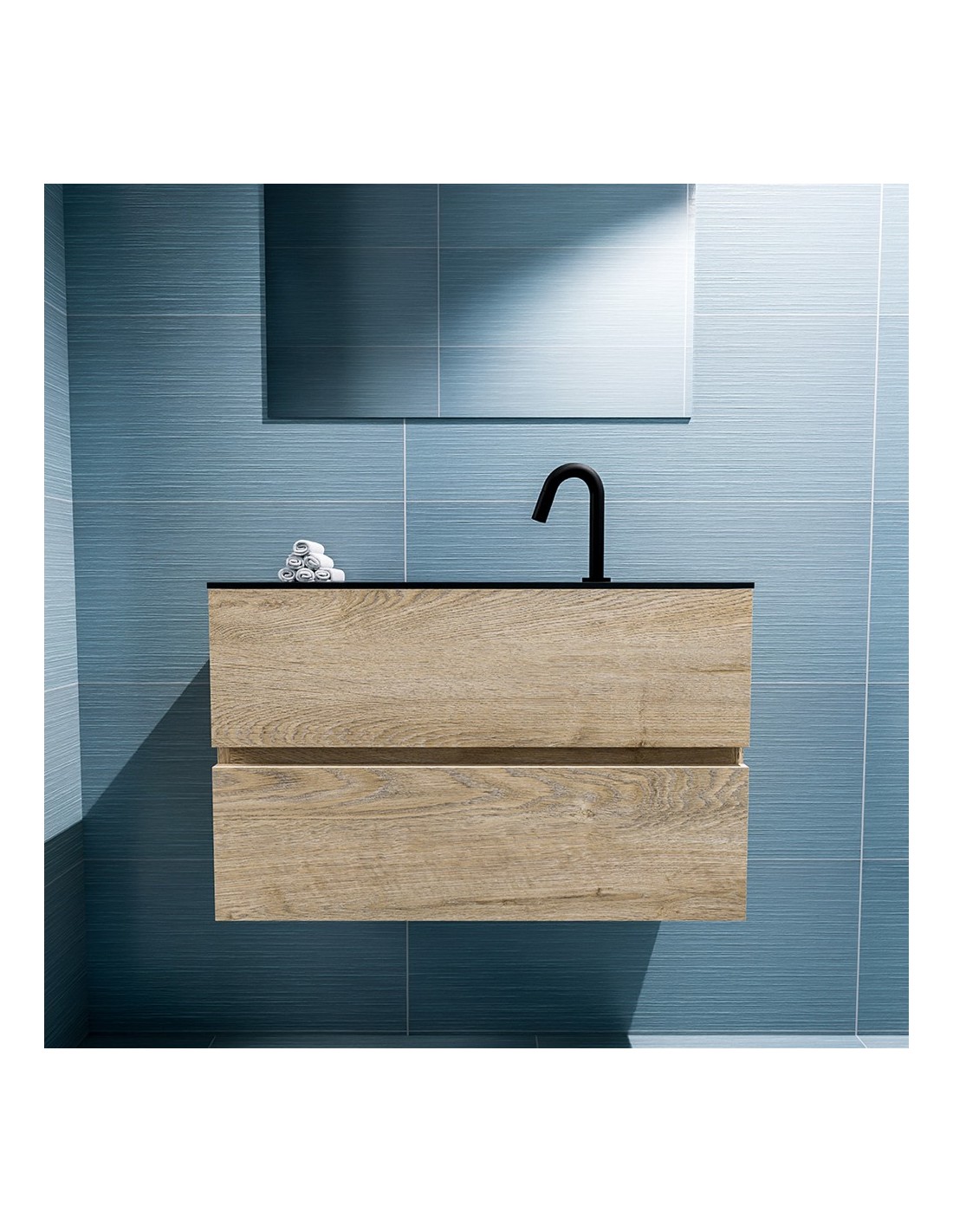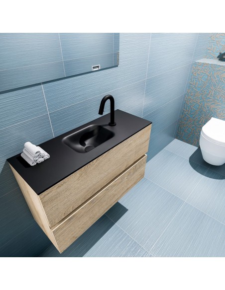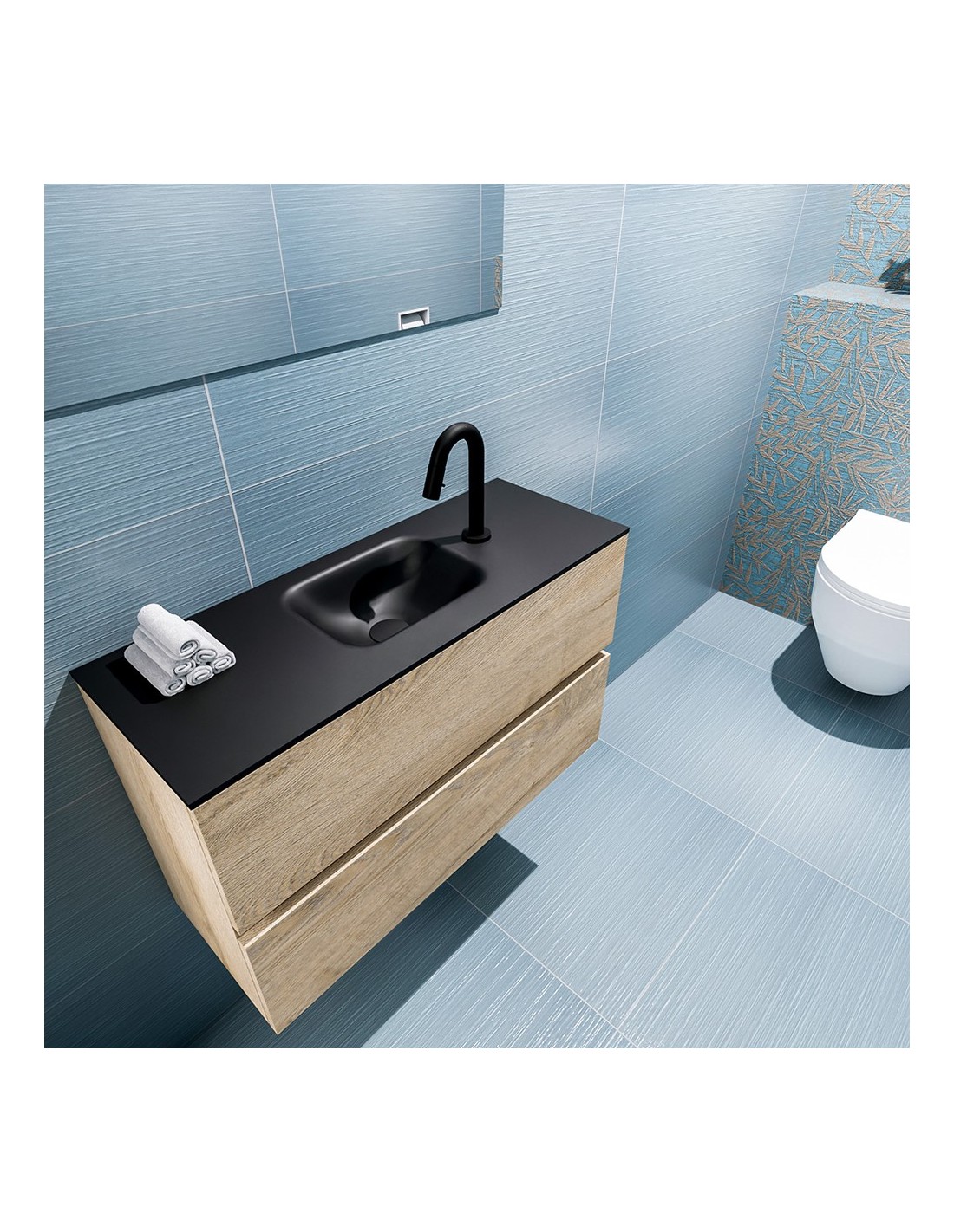 ADA Komplet badmiljø centreret håndvask B80 x H50 cm MDF - Vasket eg/Sort