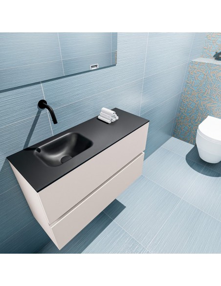 ADA Komplet badmiljø venstrevendt håndvask B80 x H50 cm MDF - Linned/Sort