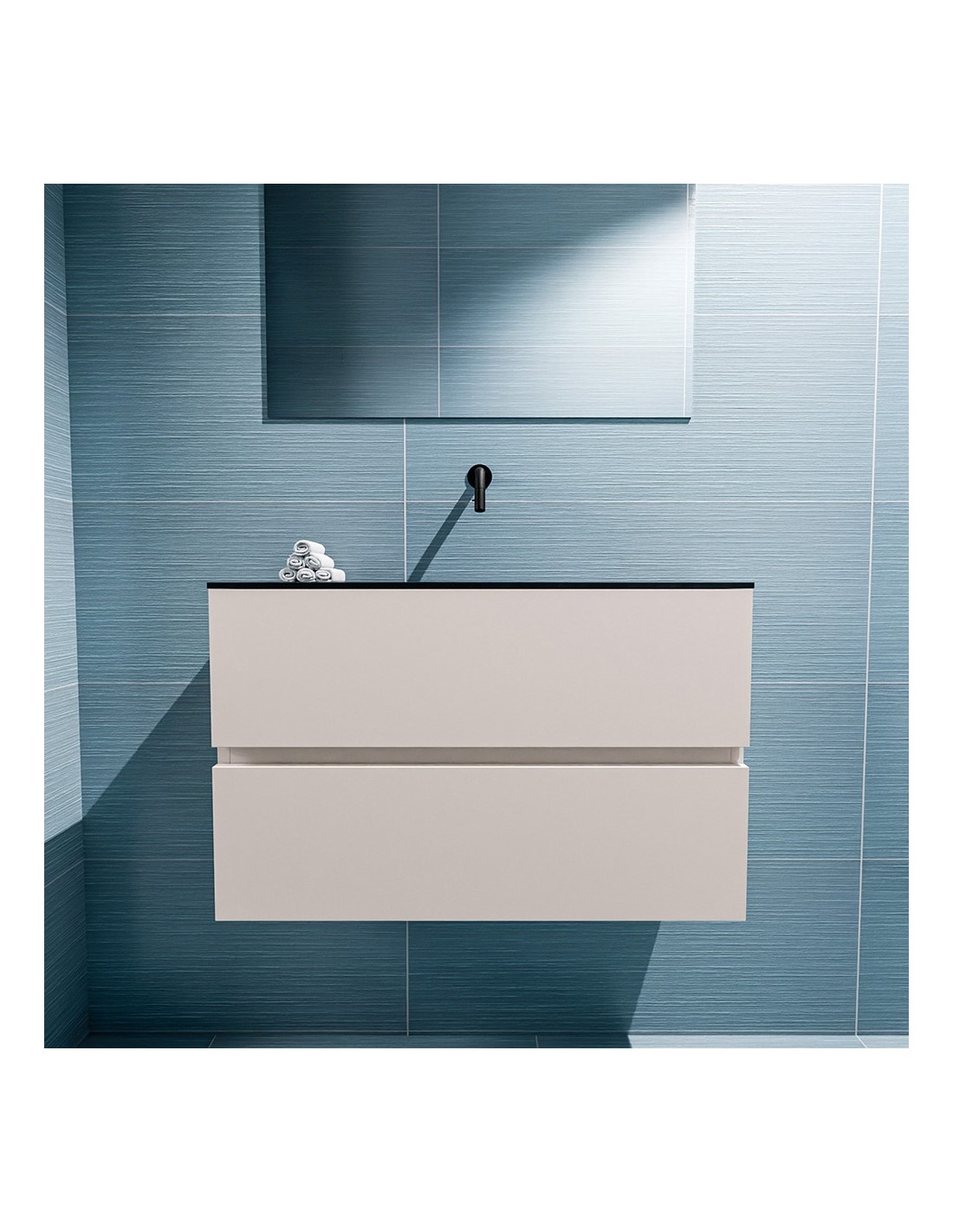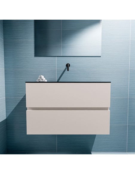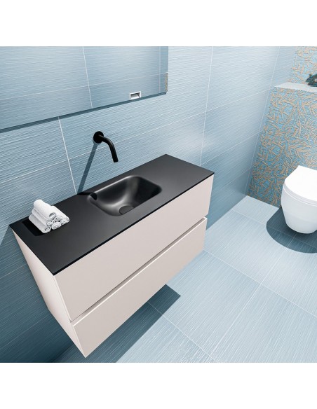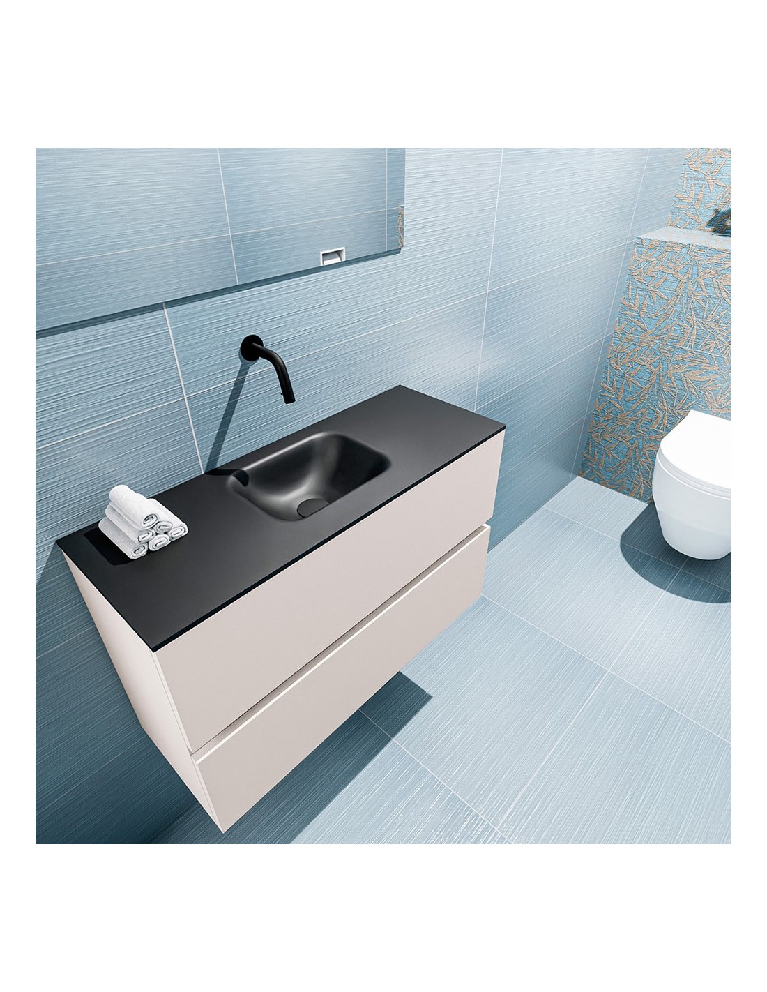 ADA Komplet badmiljø centreret håndvask B80 x H50 cm MDF - Linned/Sort