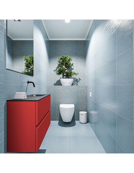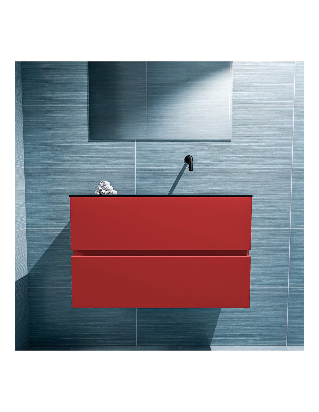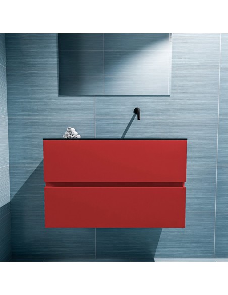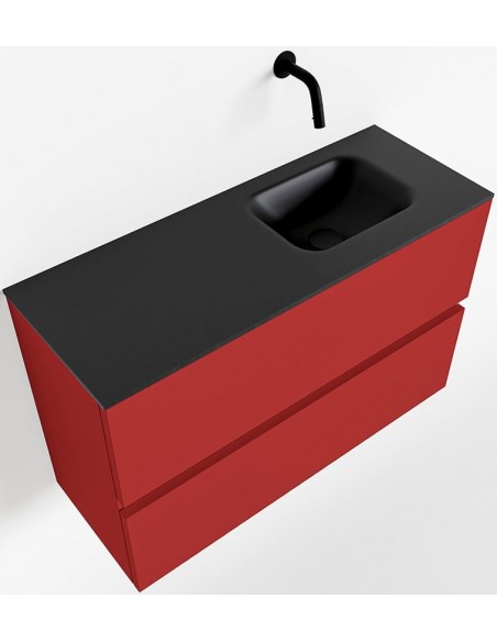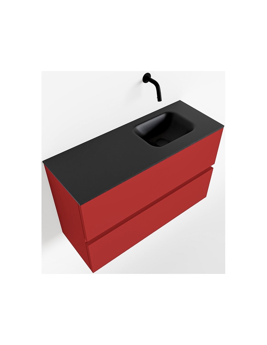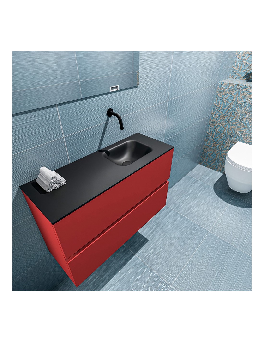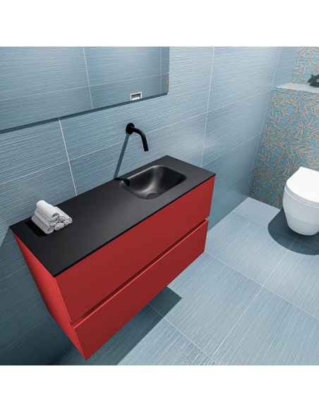 ADA Komplet badmiljø højrevendt håndvask B80 x H50 cm MDF - Rød/Sort