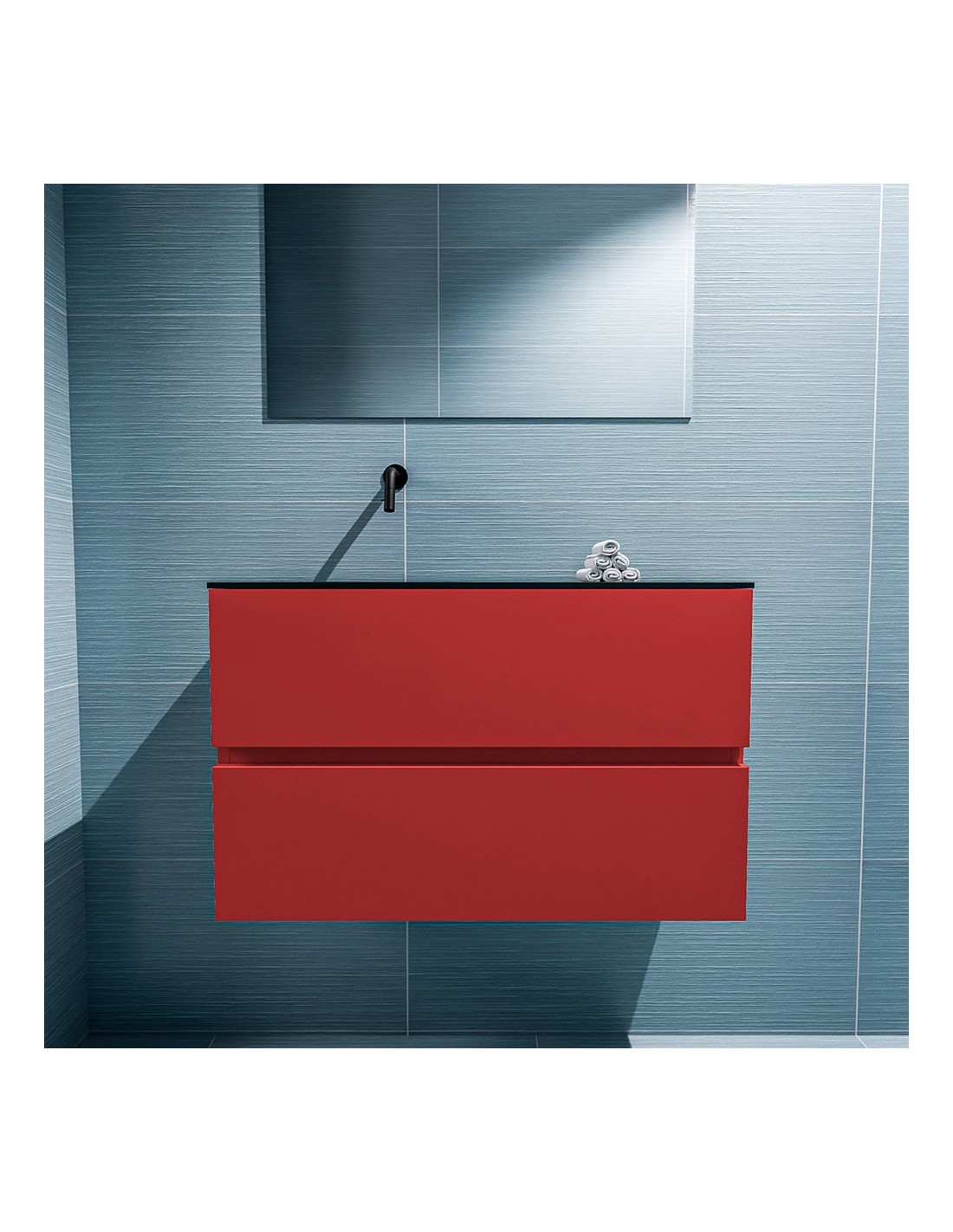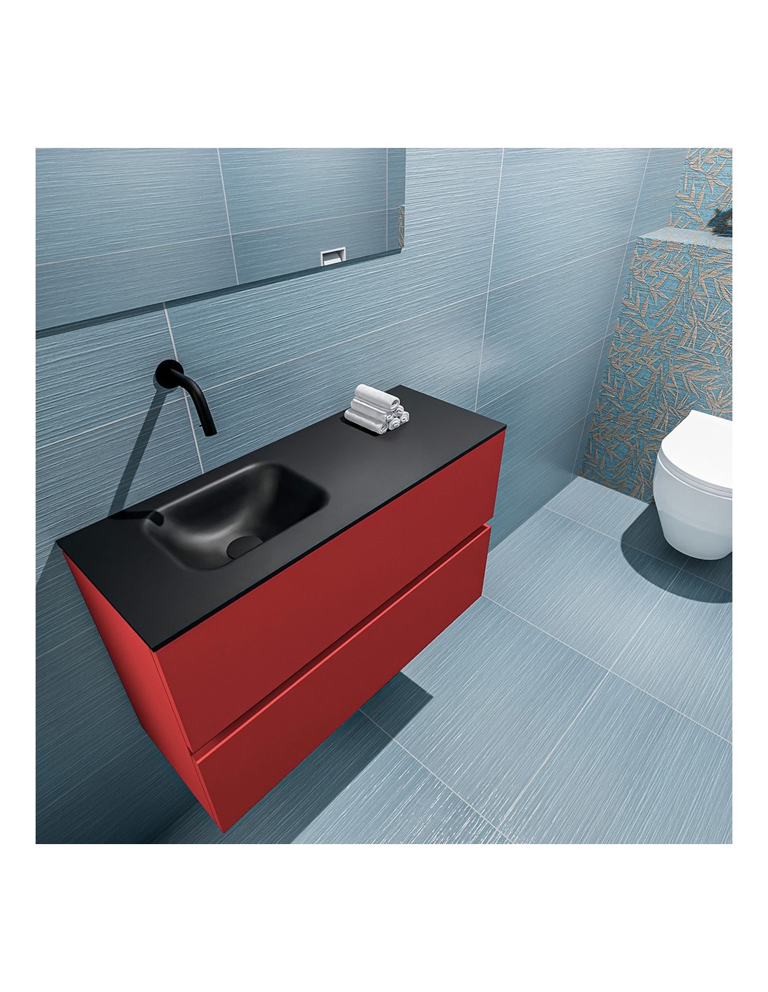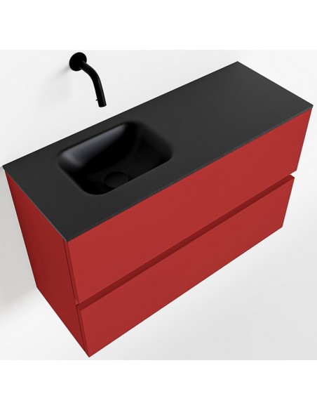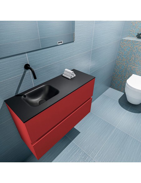 ADA Komplet badmiljø venstrevendt håndvask B80 x H50 cm MDF - Rød/Sort