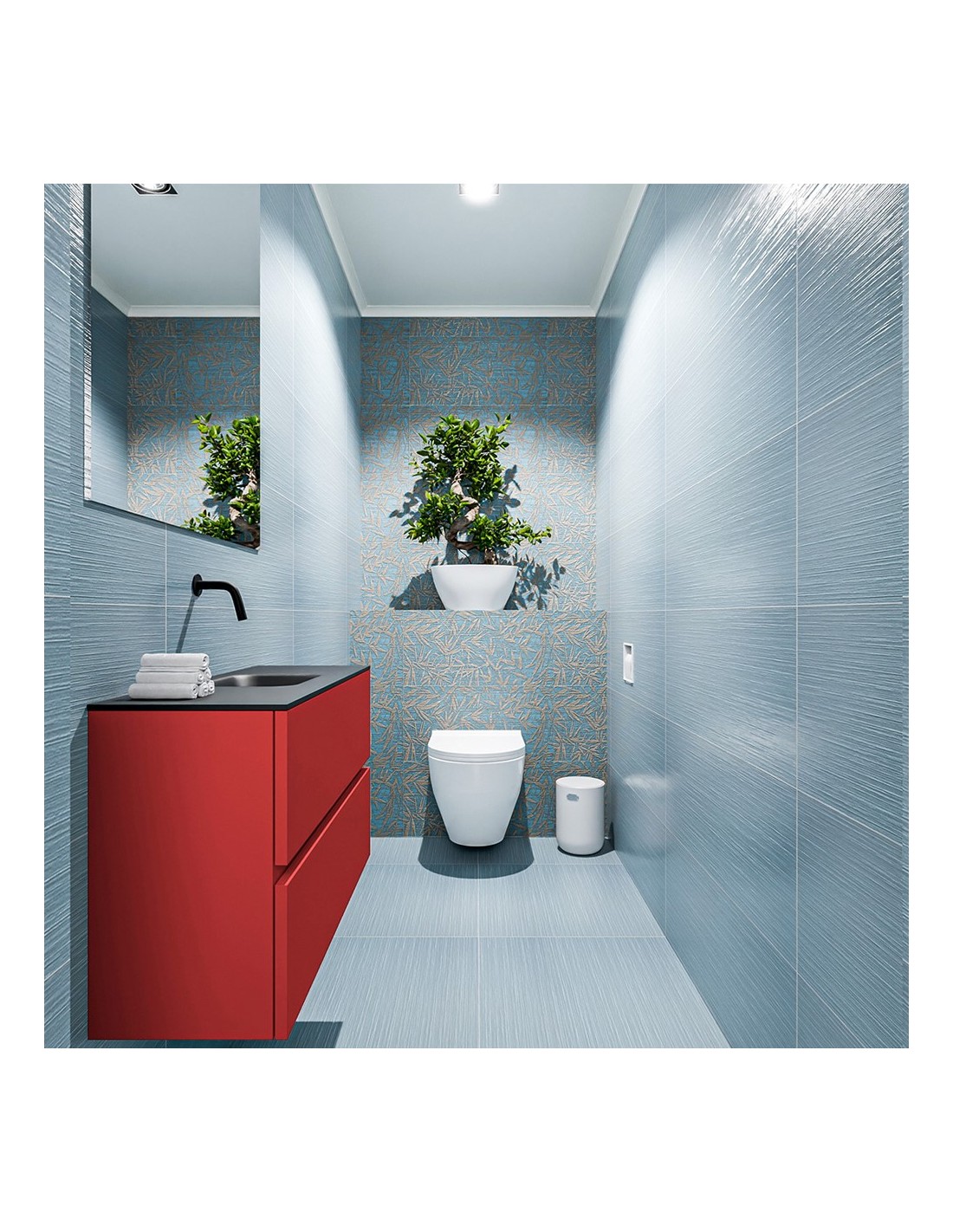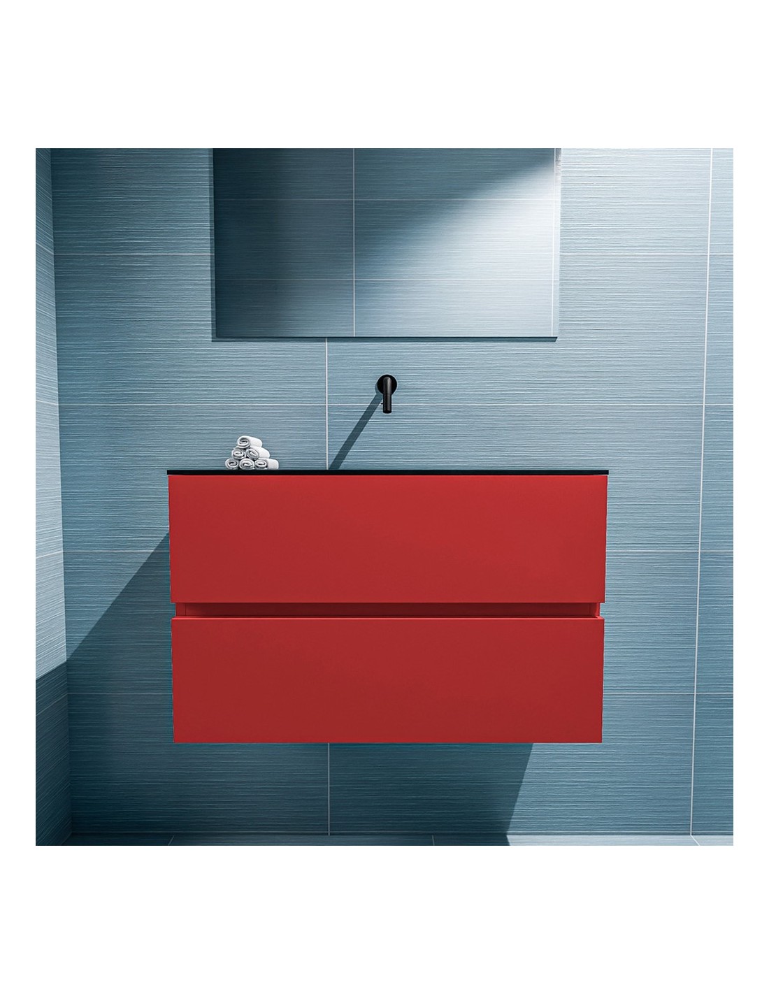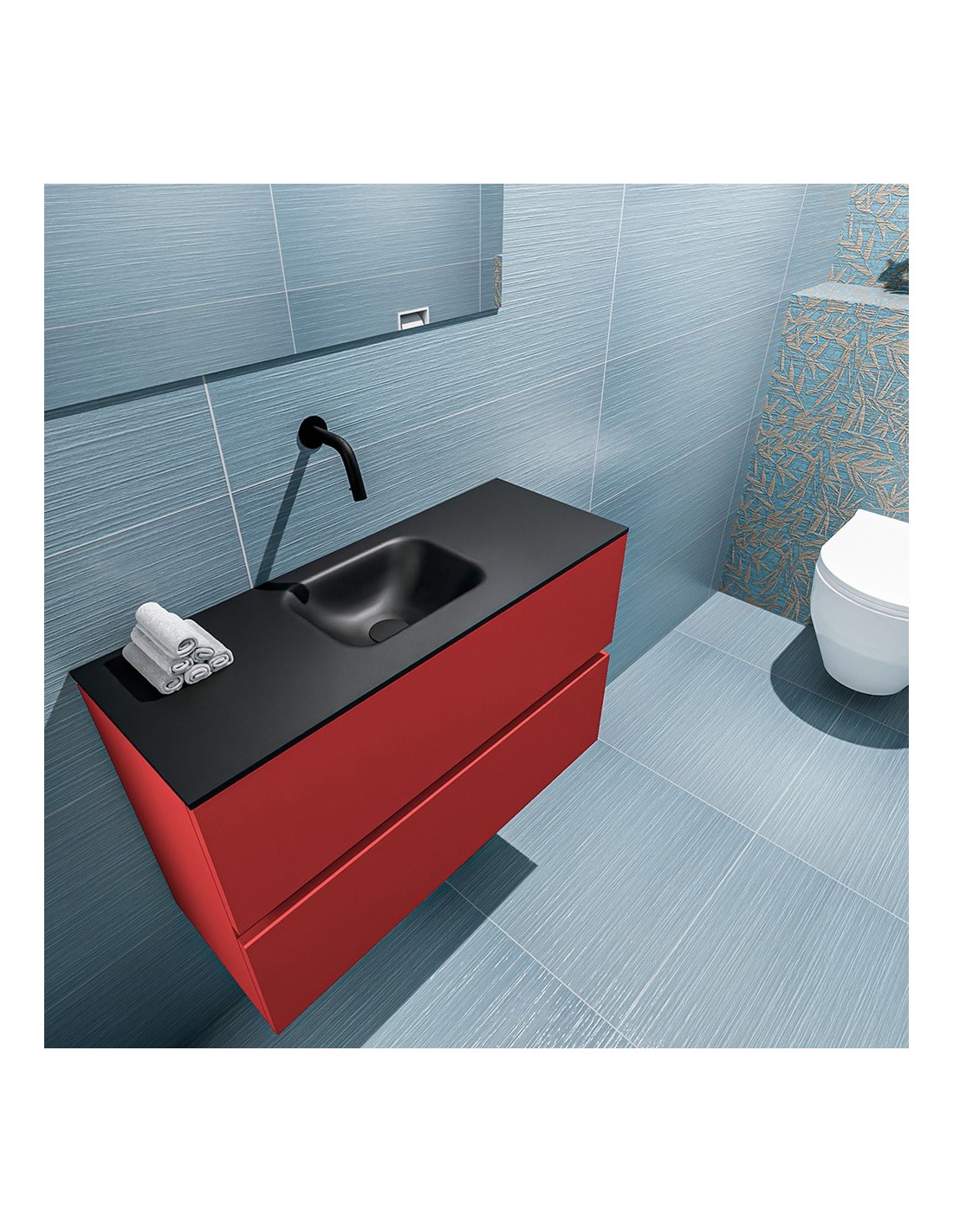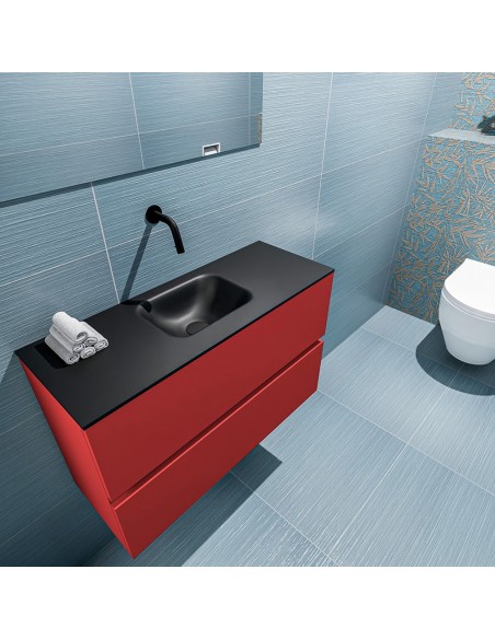 ADA Komplet badmiljø centreret håndvask B80 x H50 cm MDF - Rød/Sort