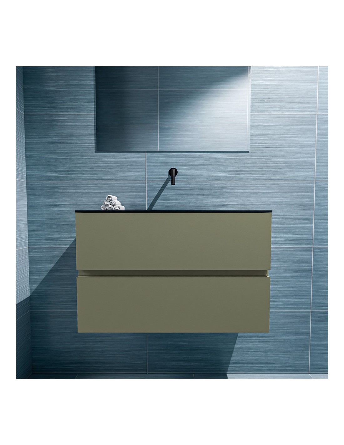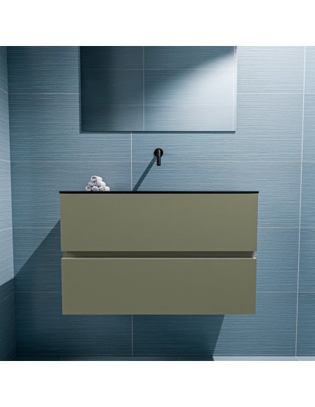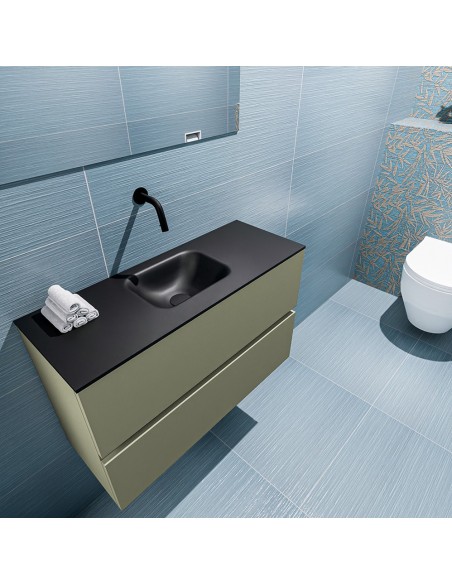 ADA Komplet badmiljø centreret håndvask B80 x H50 cm MDF - Armygrøn/Sort