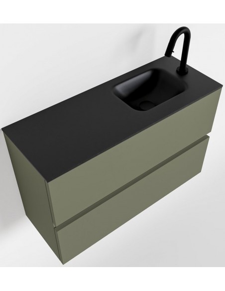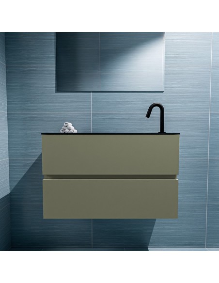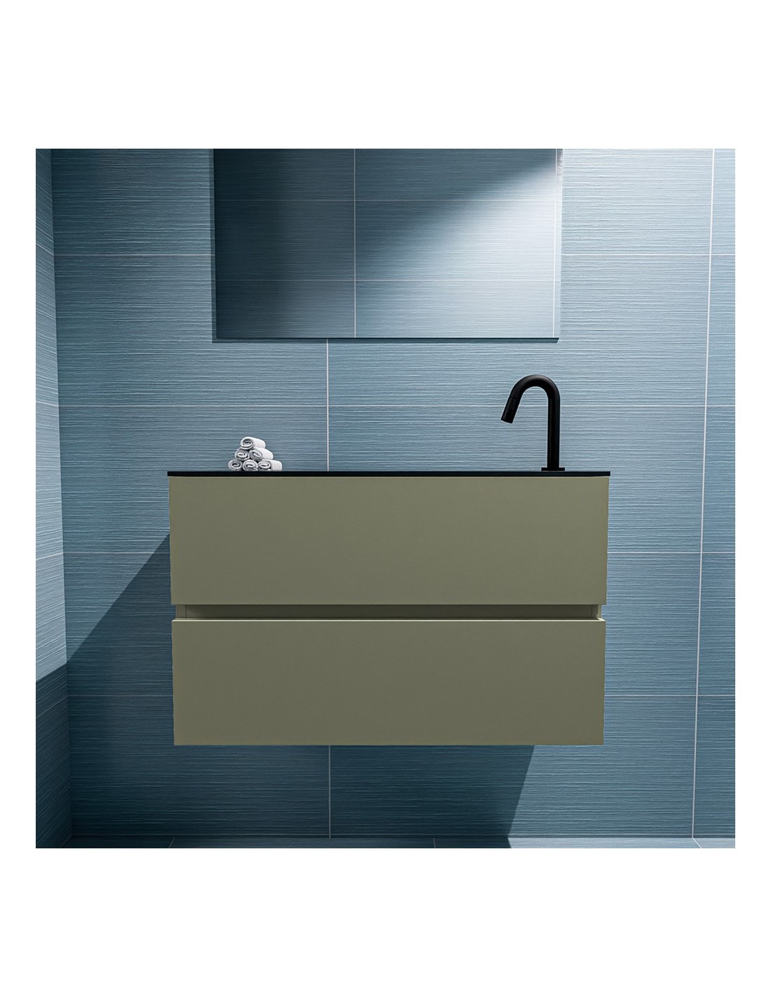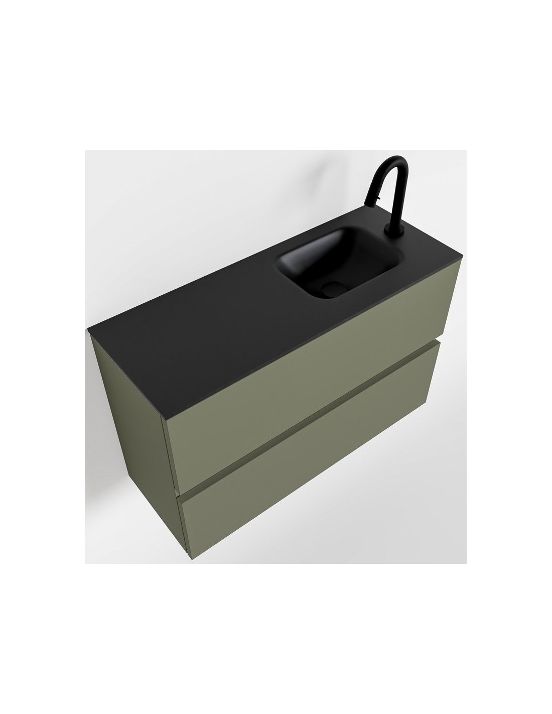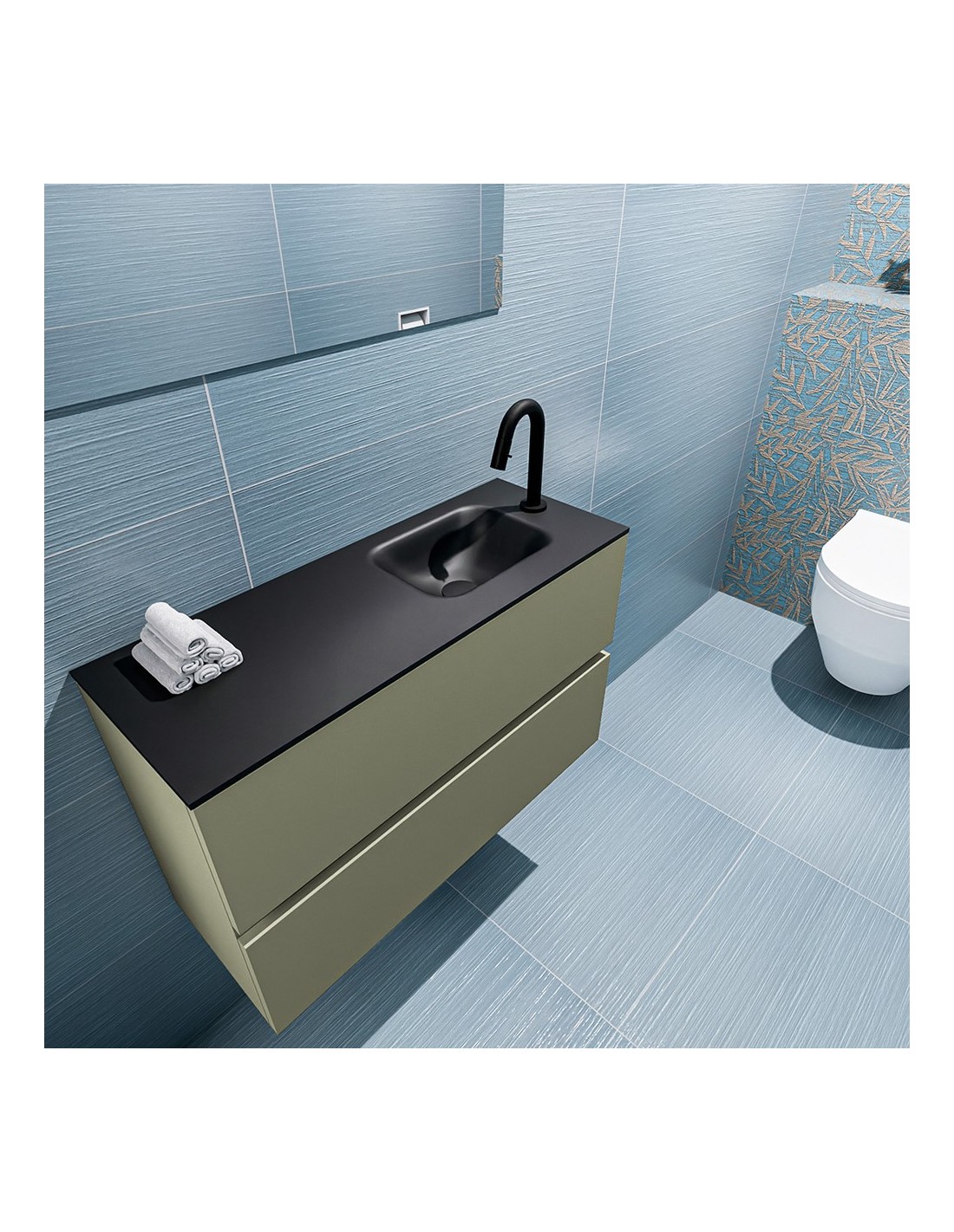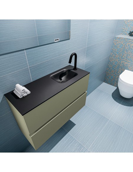 ADA Komplet badmiljø højrevendt håndvask B80 x H50 cm MDF - Armygrøn/Sort