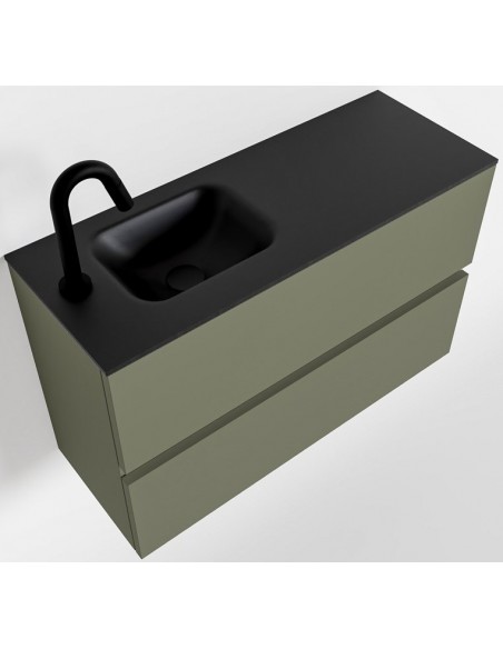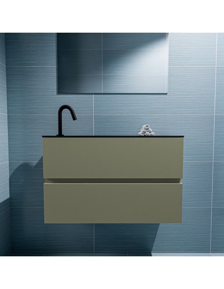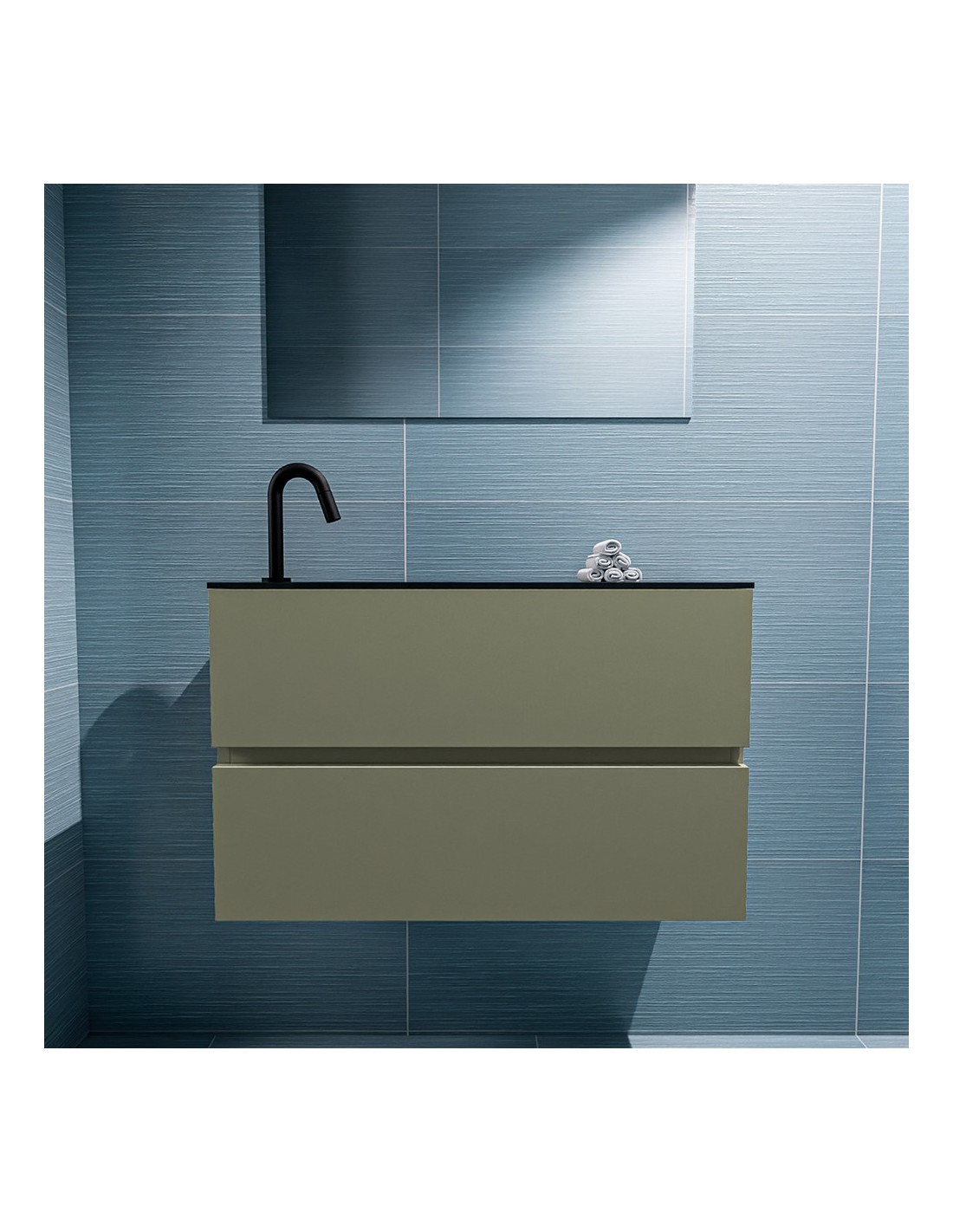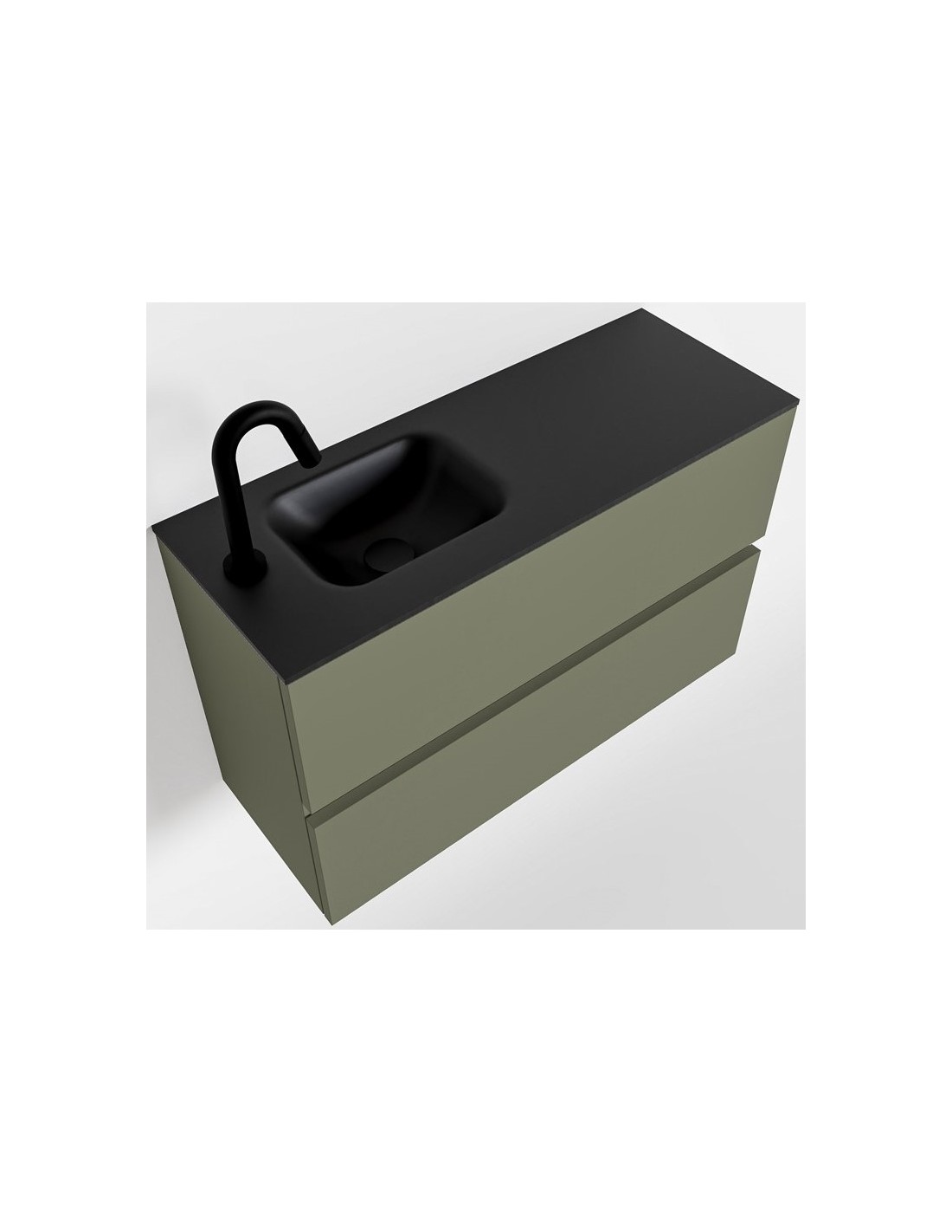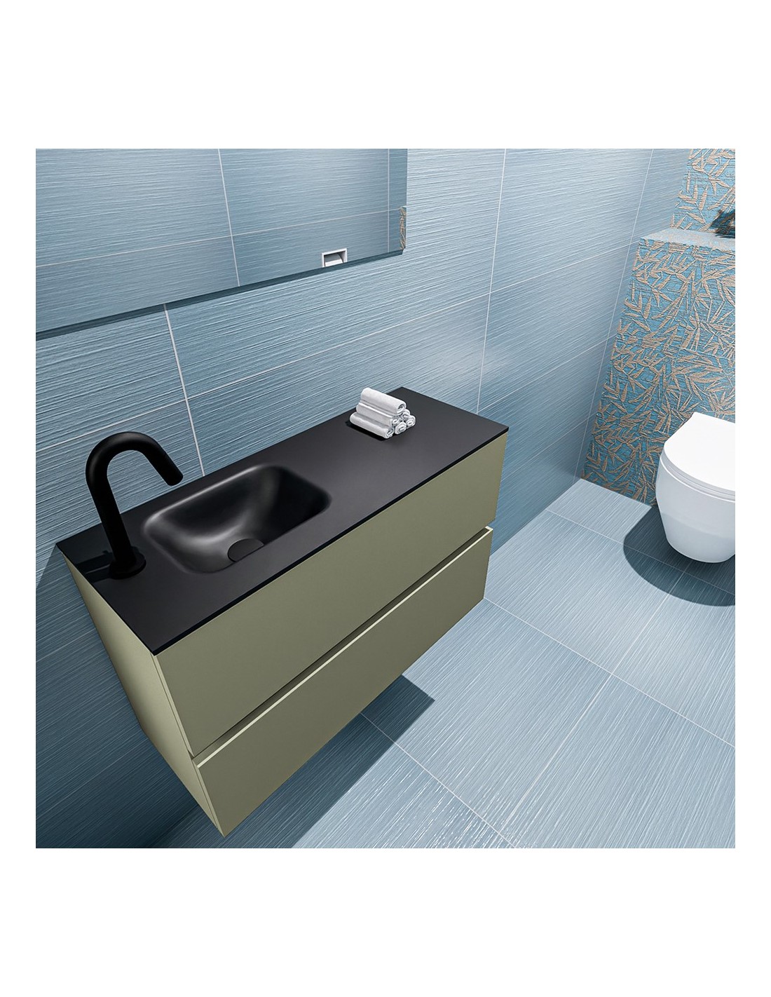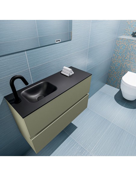 ADA Komplet badmiljø venstrevendt håndvask B80 x H50 cm MDF - Armygrøn/Sort