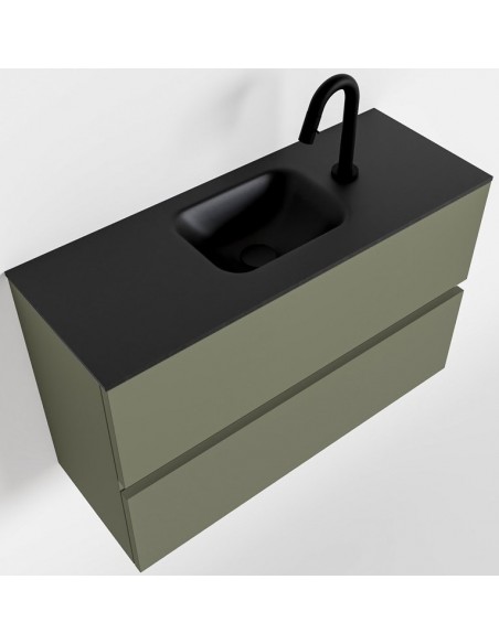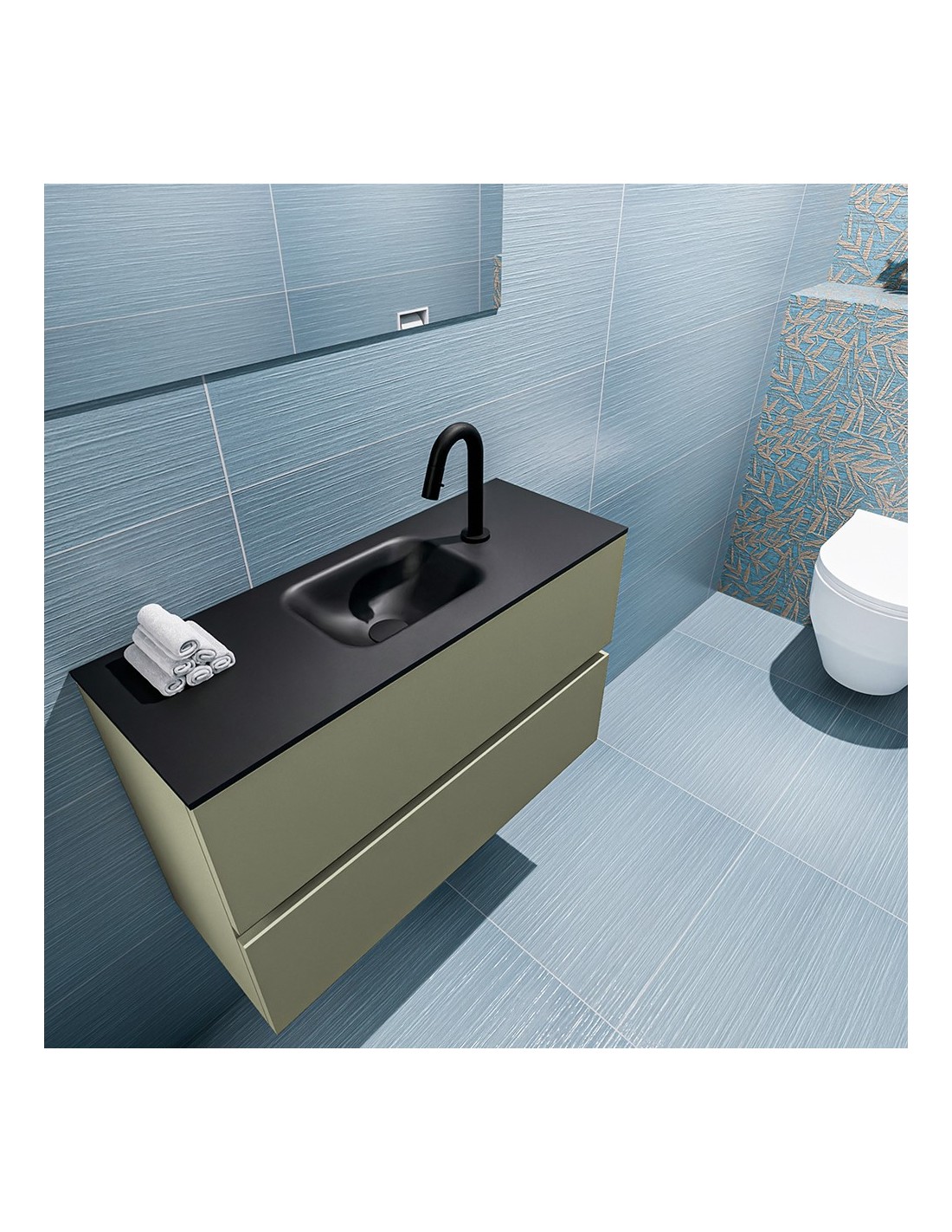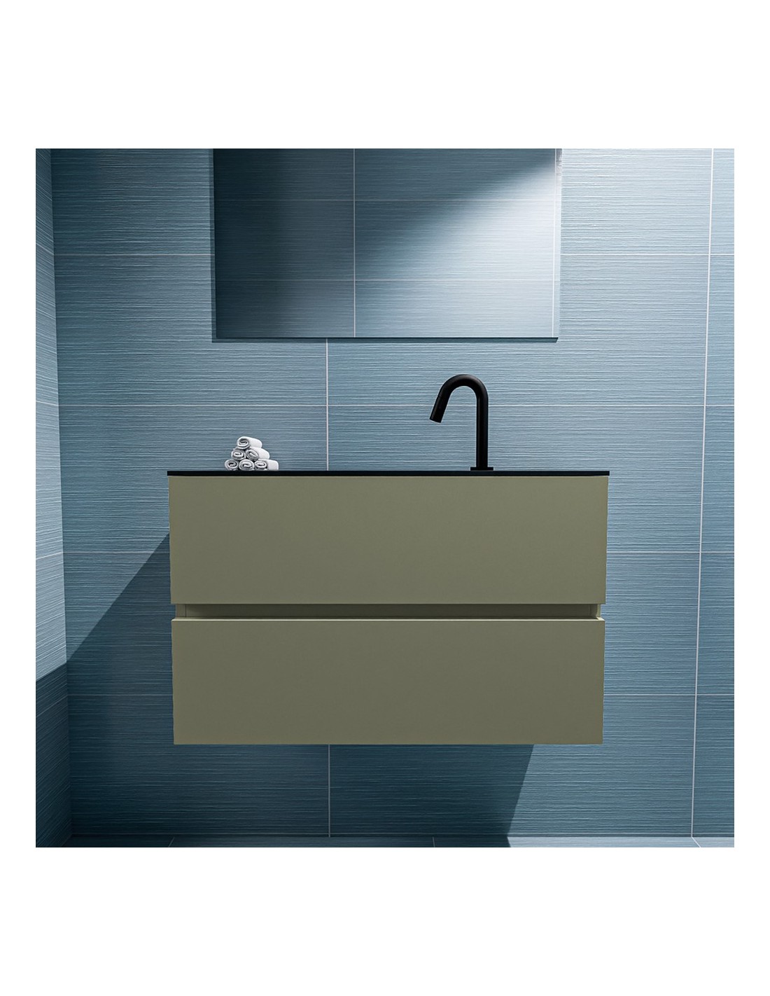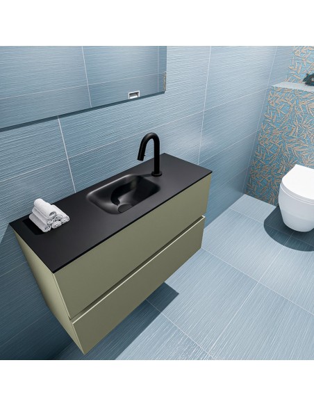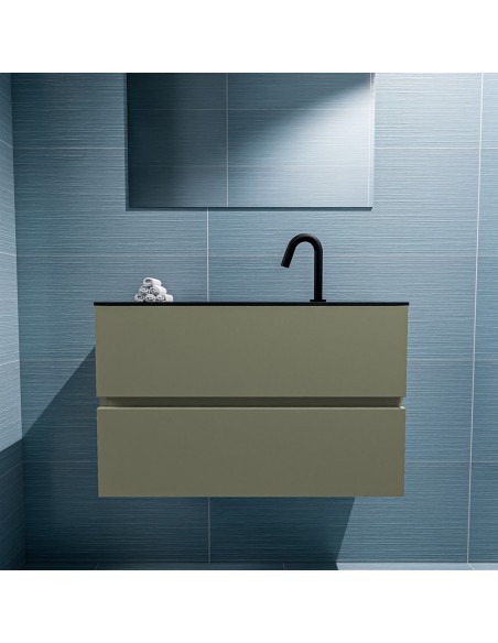 ADA Komplet badmiljø centreret håndvask B80 x H50 cm MDF - Armygrøn/Sort
