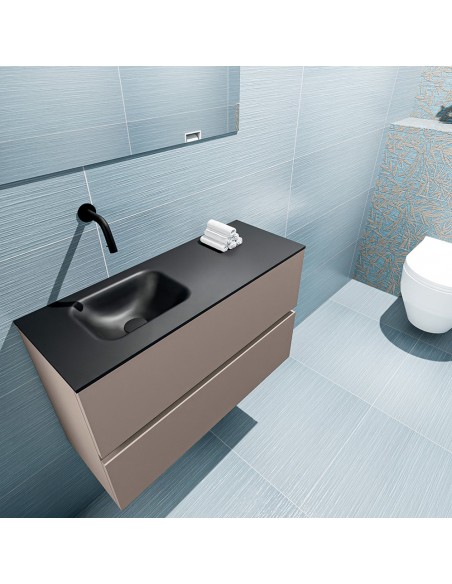 ADA Komplet badmiljø venstrevendt håndvask B80 x H50 cm MDF - Røg/Sort