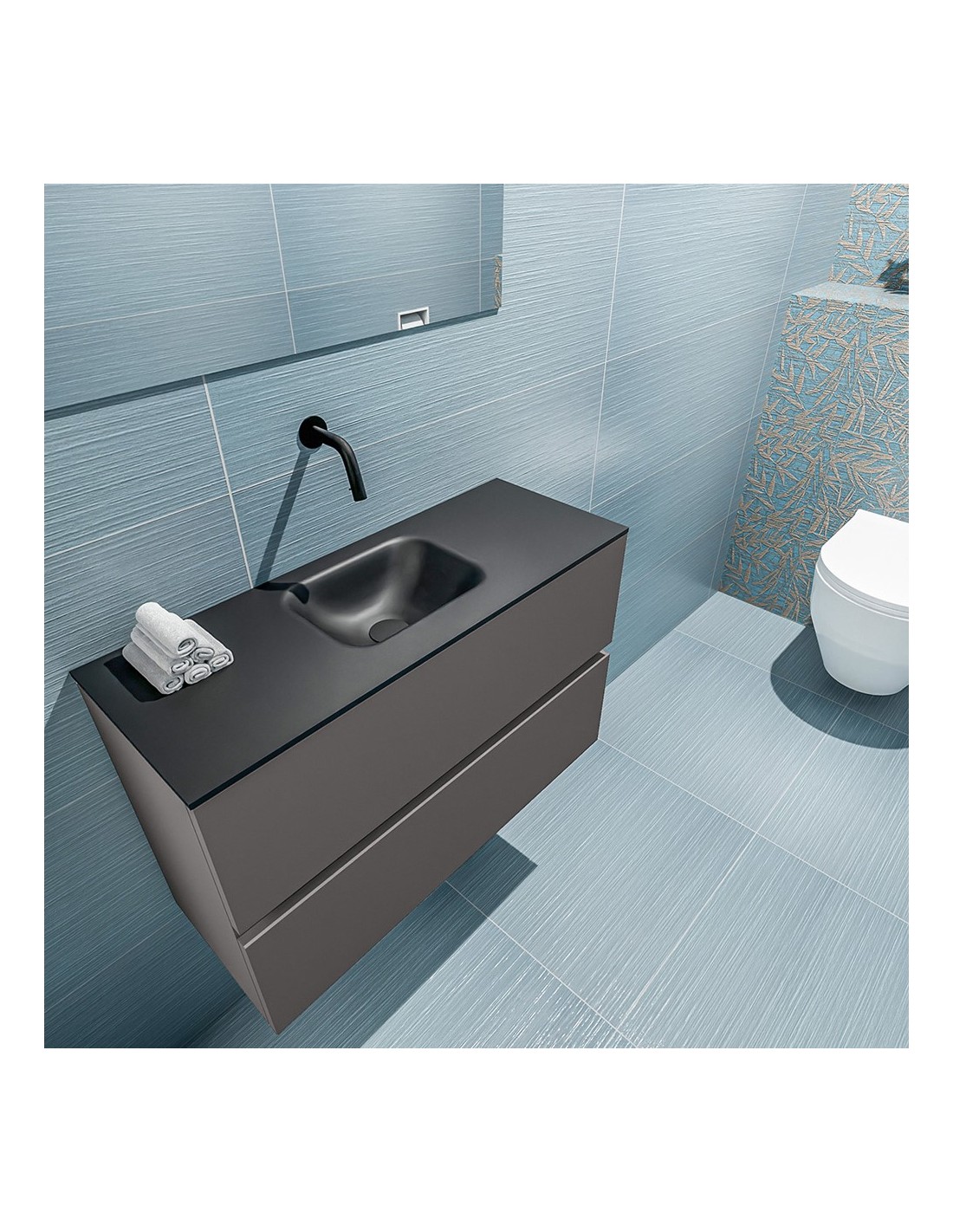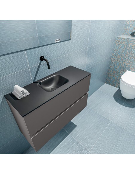 ADA Komplet badmiljø centreret håndvask B80 x H50 cm MDF - Mørkegrå/Sort