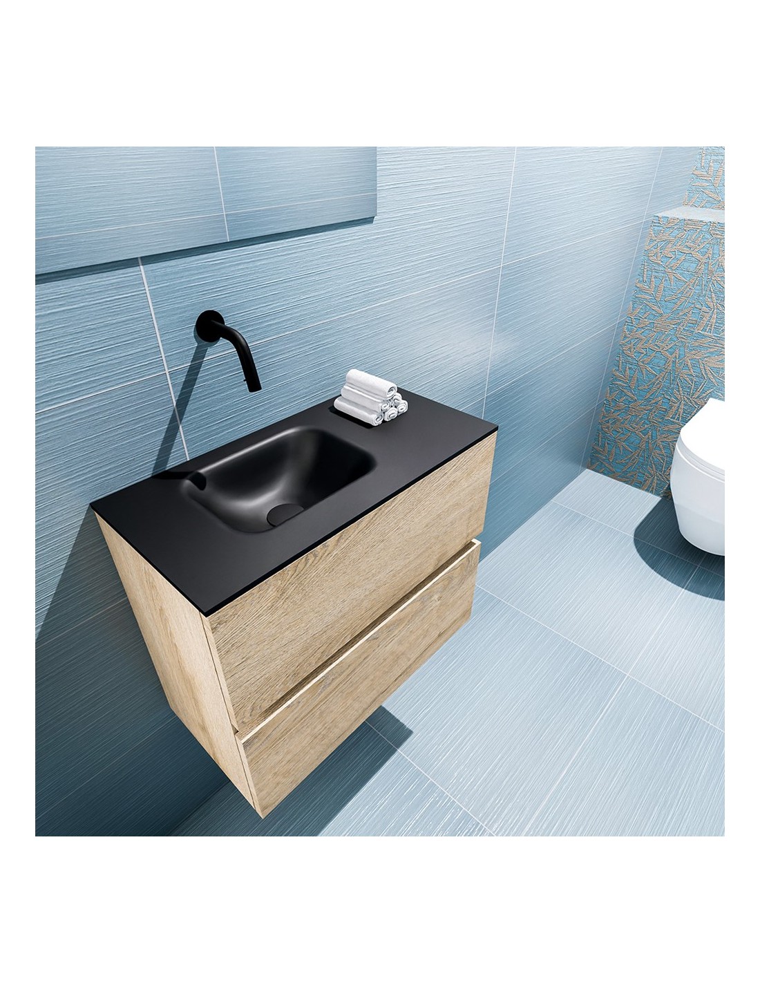 ADA Komplet badmiljø venstrevendt håndvask B60 x H50 cm MDF - Vasket eg/Sort