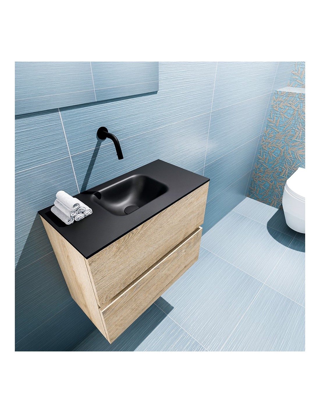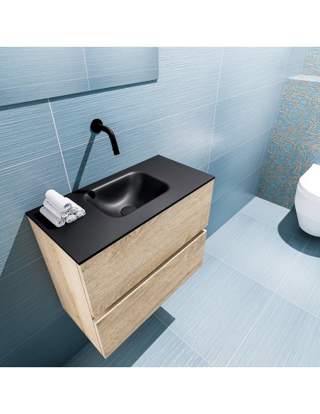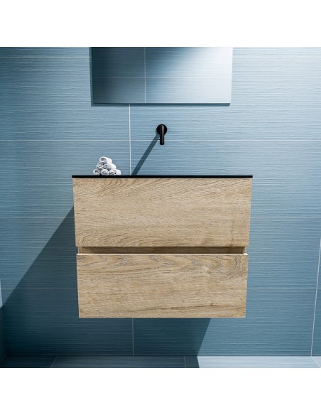ADA Komplet badmiljø centreret håndvask B60 x H50 cm MDF - Vasket eg/Sort