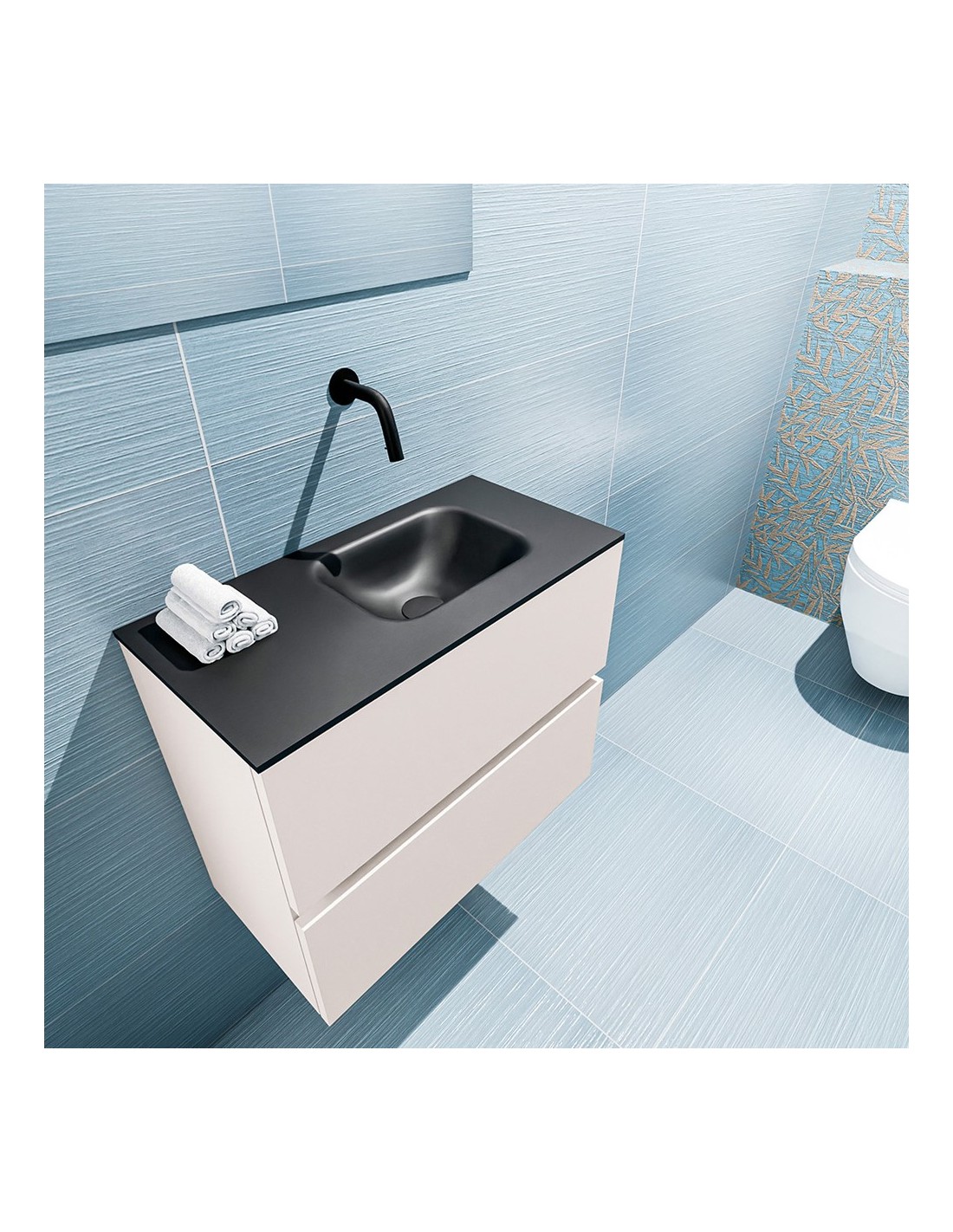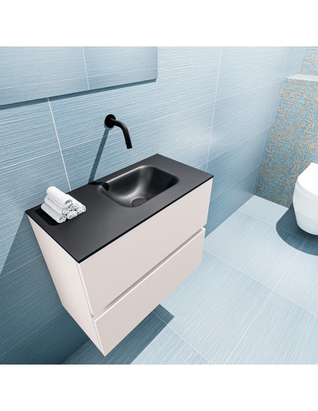 ADA Komplet badmiljø højrevendt håndvask B60 x H50 cm MDF - Linned/Sort