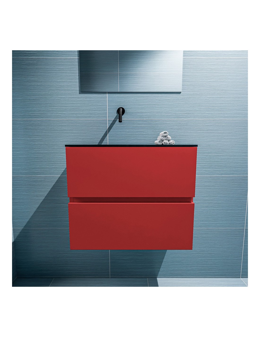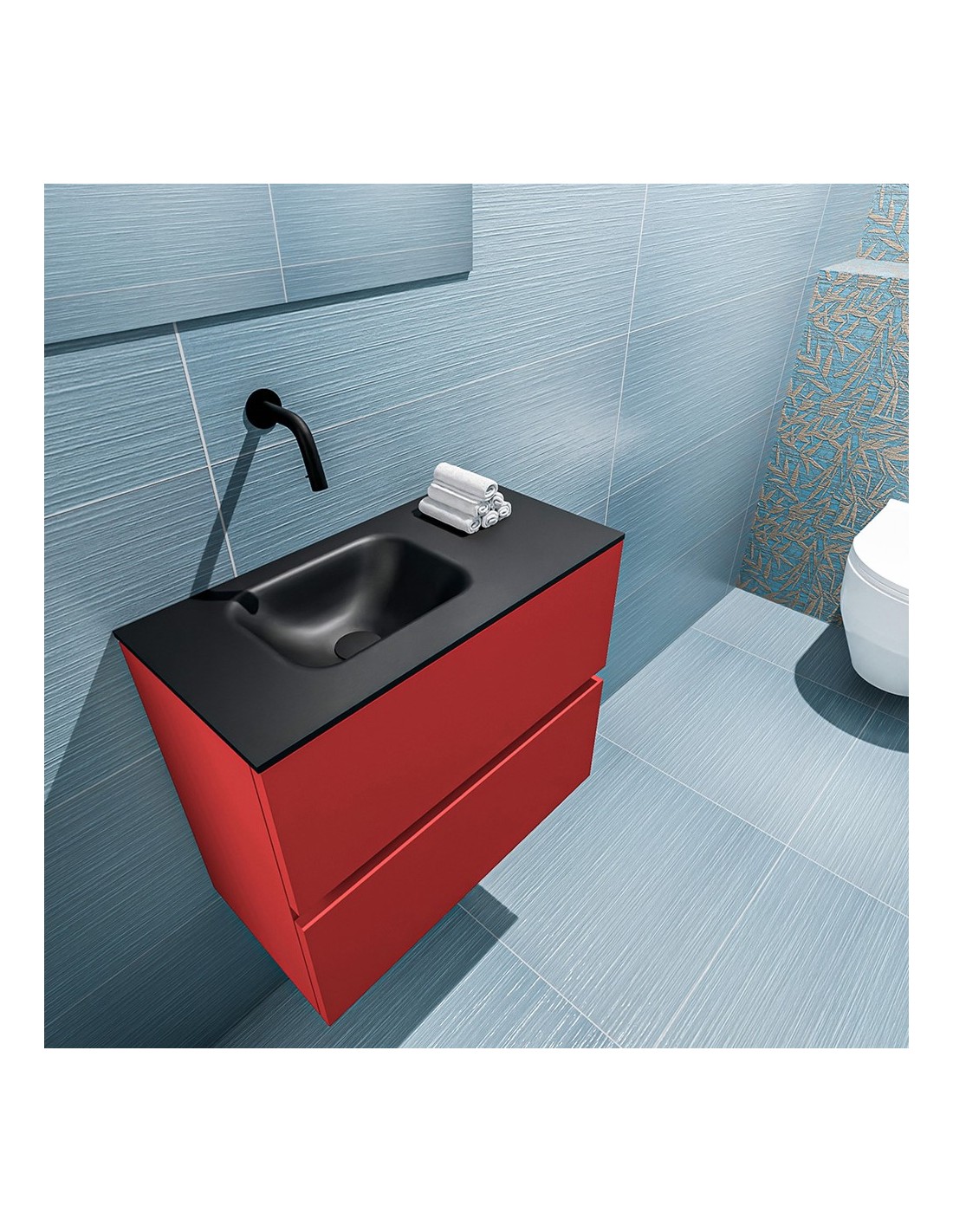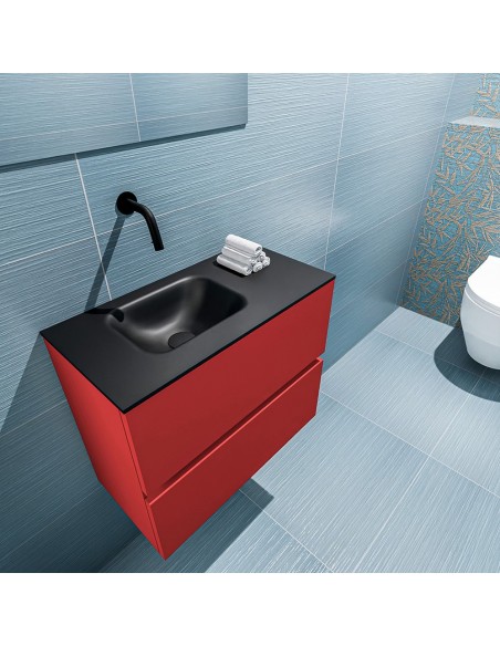 ADA Komplet badmiljø venstrevendt håndvask B60 x H50 cm MDF - Rød/Sort