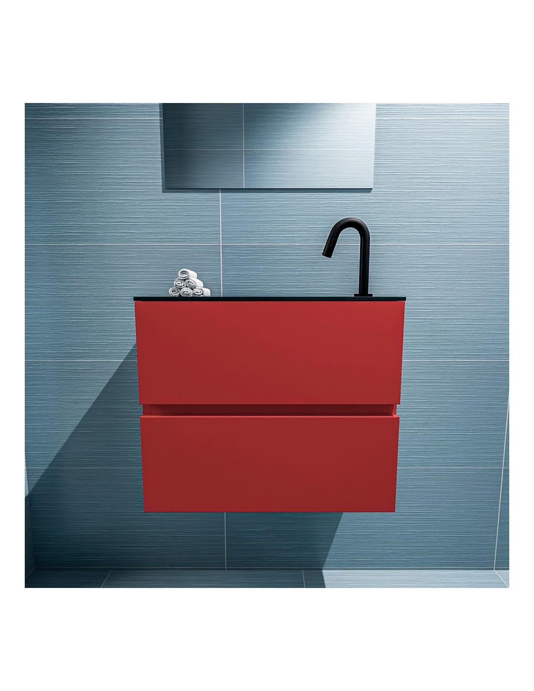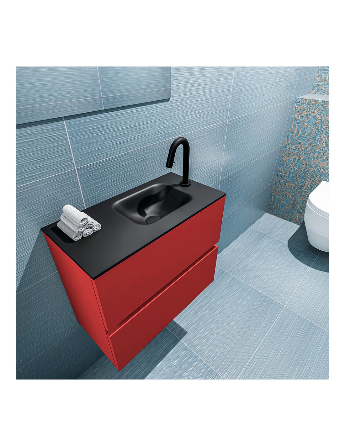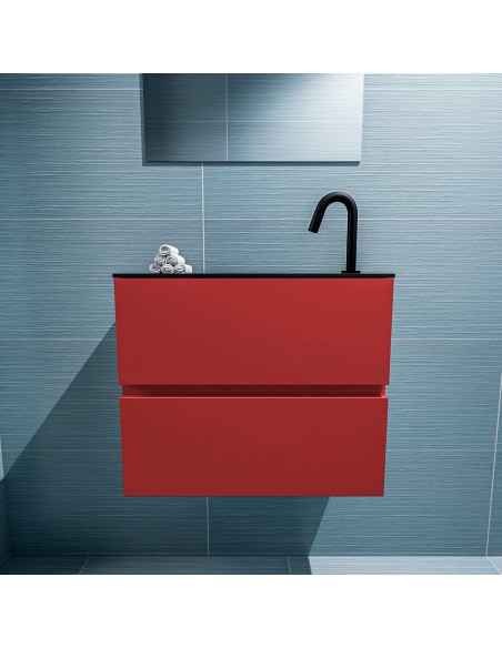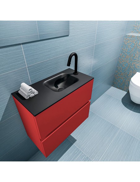 ADA Komplet badmiljø højrevendt håndvask B60 x H50 cm MDF - Rød/Sort