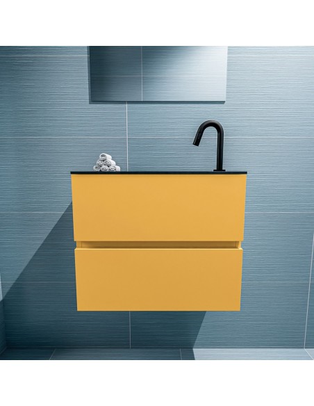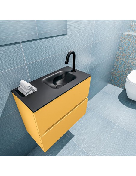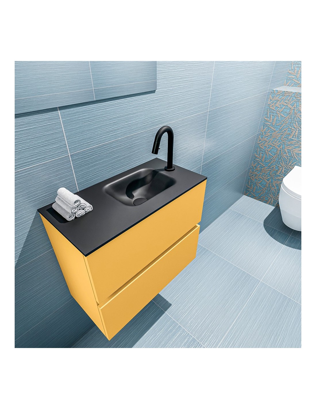 ADA Komplet badmiljø højrevendt håndvask B60 x H50 cm MDF - Okker/Sort