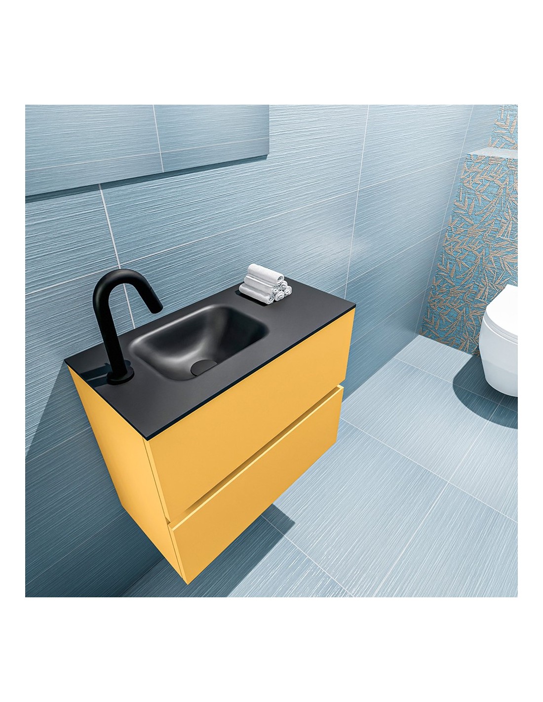 ADA Komplet badmiljø venstrevendt håndvask B60 x H50 cm MDF - Okker/Sort