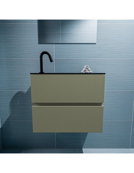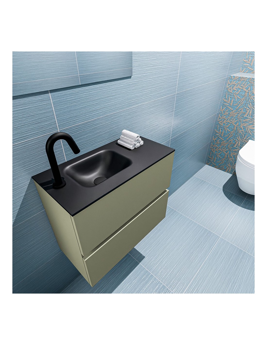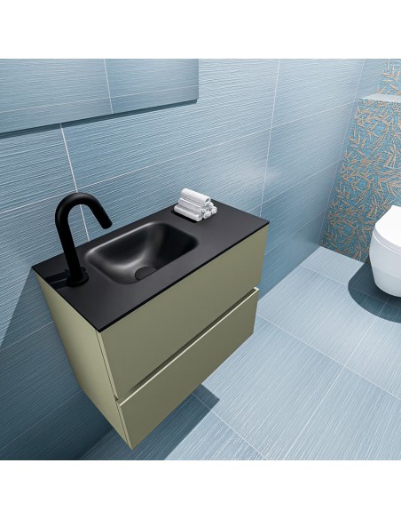 ADA Komplet badmiljø venstrevendt håndvask B60 x H50 cm MDF - Armygrøn/Sort