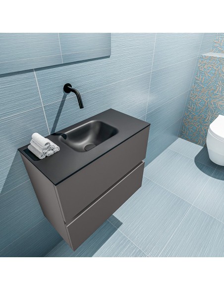 ADA Komplet badmiljø centreret håndvask B60 x H50 cm MDF - Mørkegrå/Sort