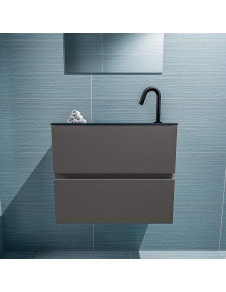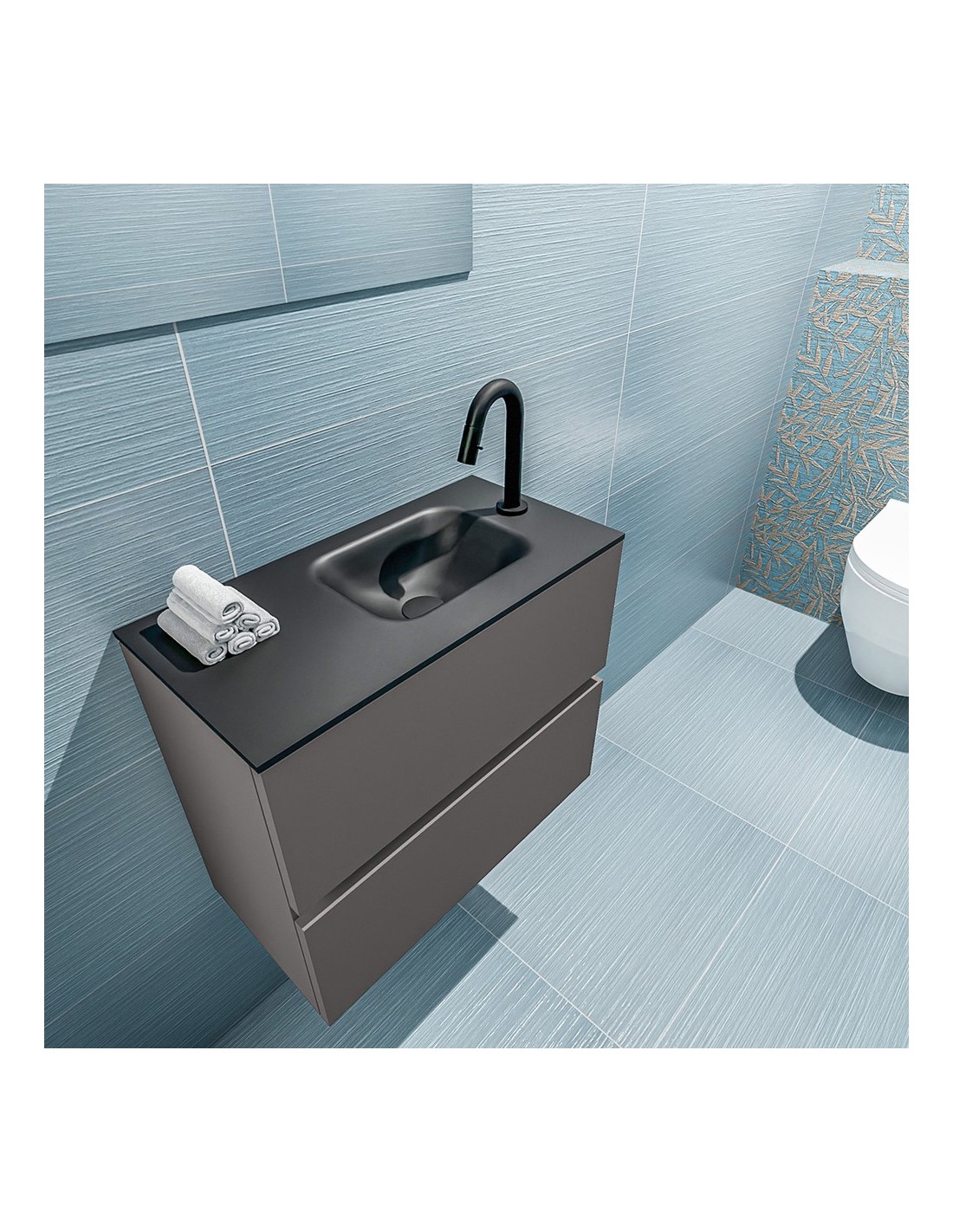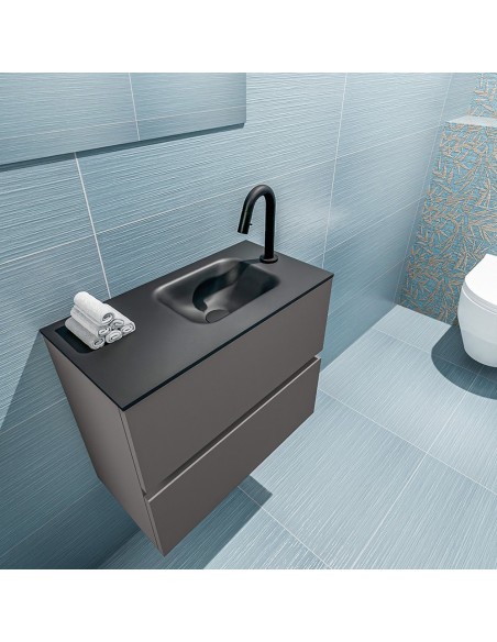 ADA Komplet badmiljø højrevendt håndvask B60 x H50 cm MDF - Mørkegrå/Sort