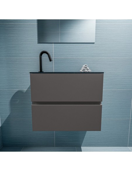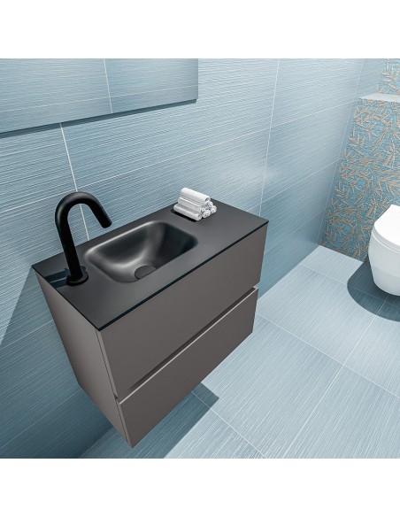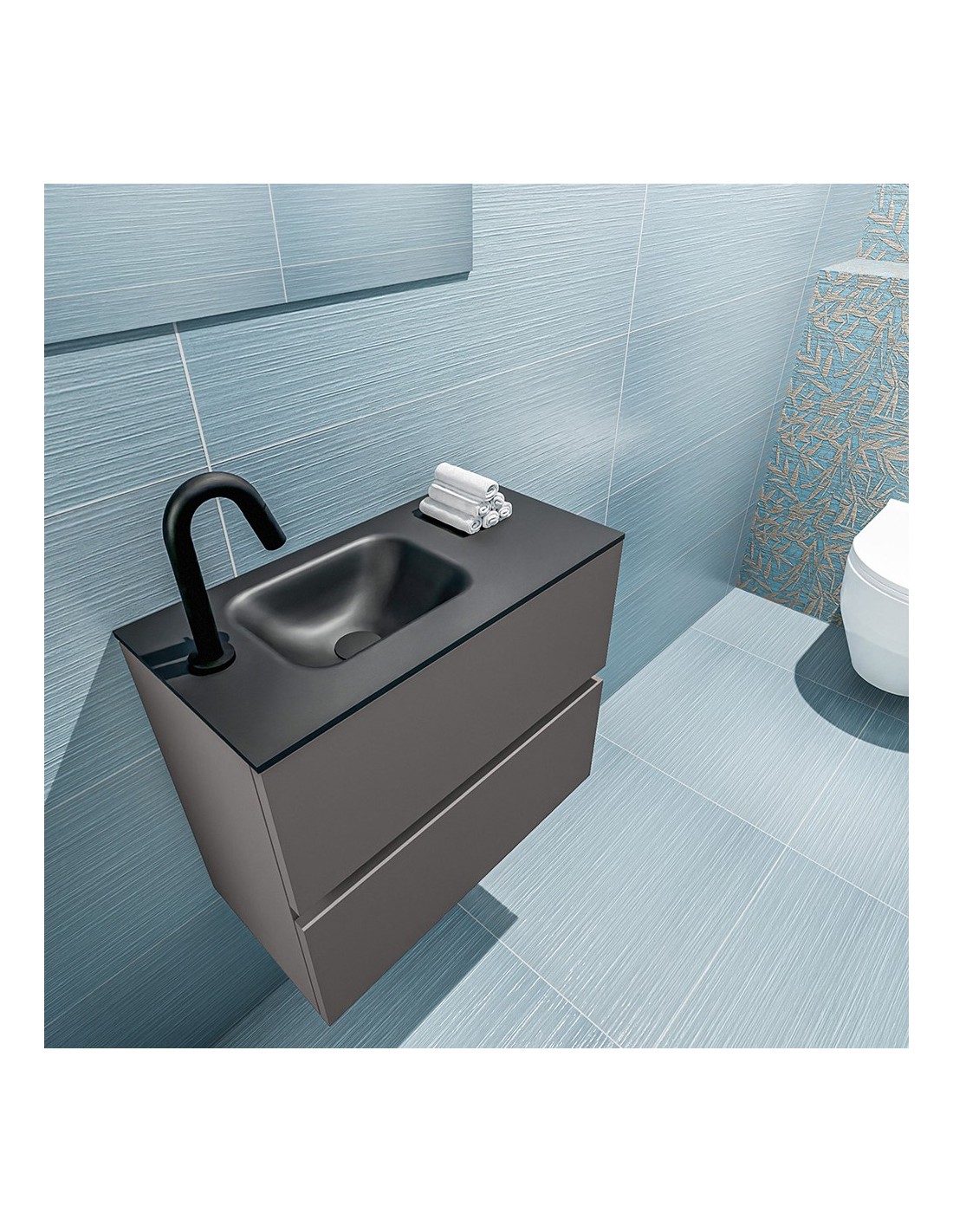 ADA Komplet badmiljø venstrevendt håndvask B60 x H50 cm MDF - Mørkegrå/Sort