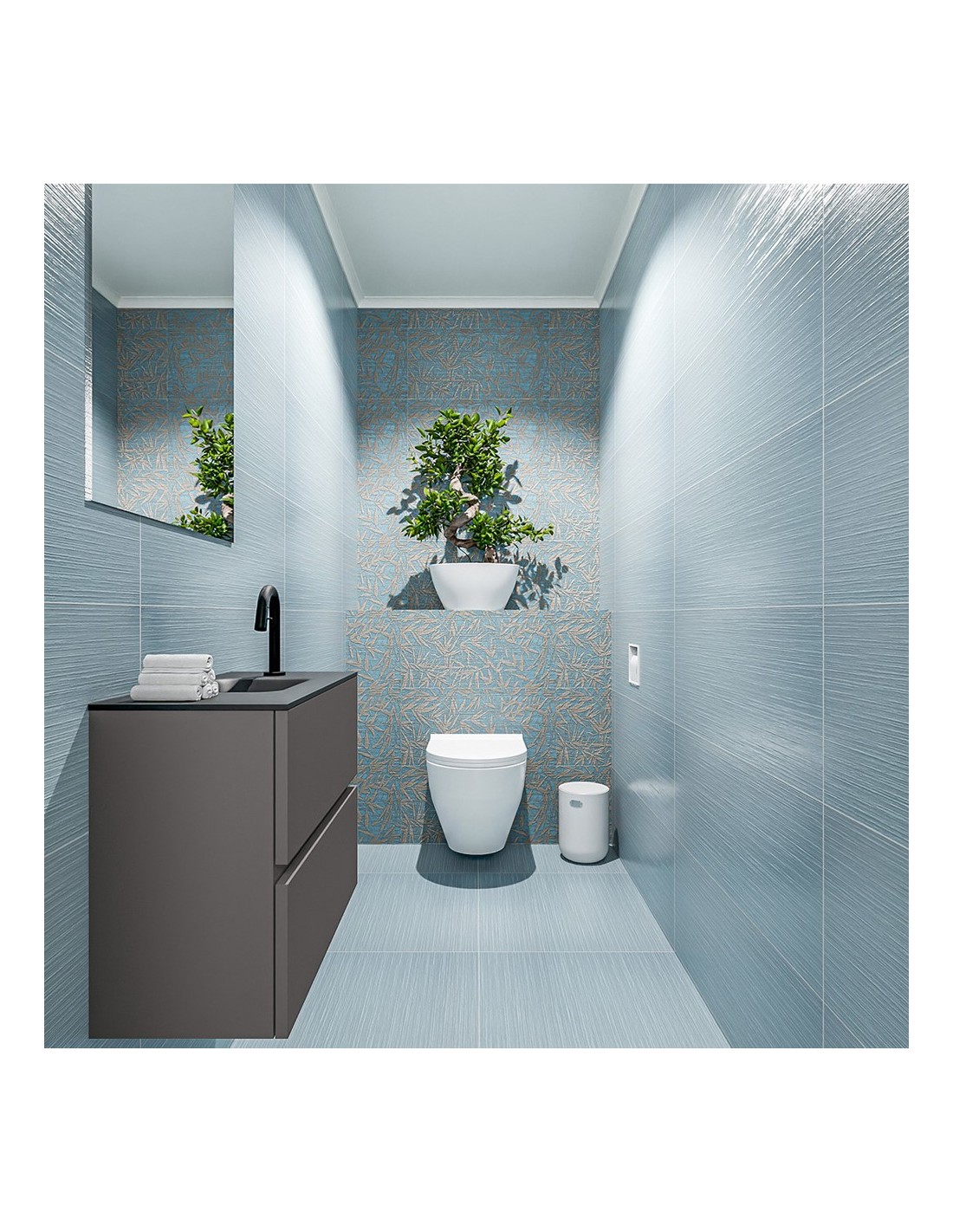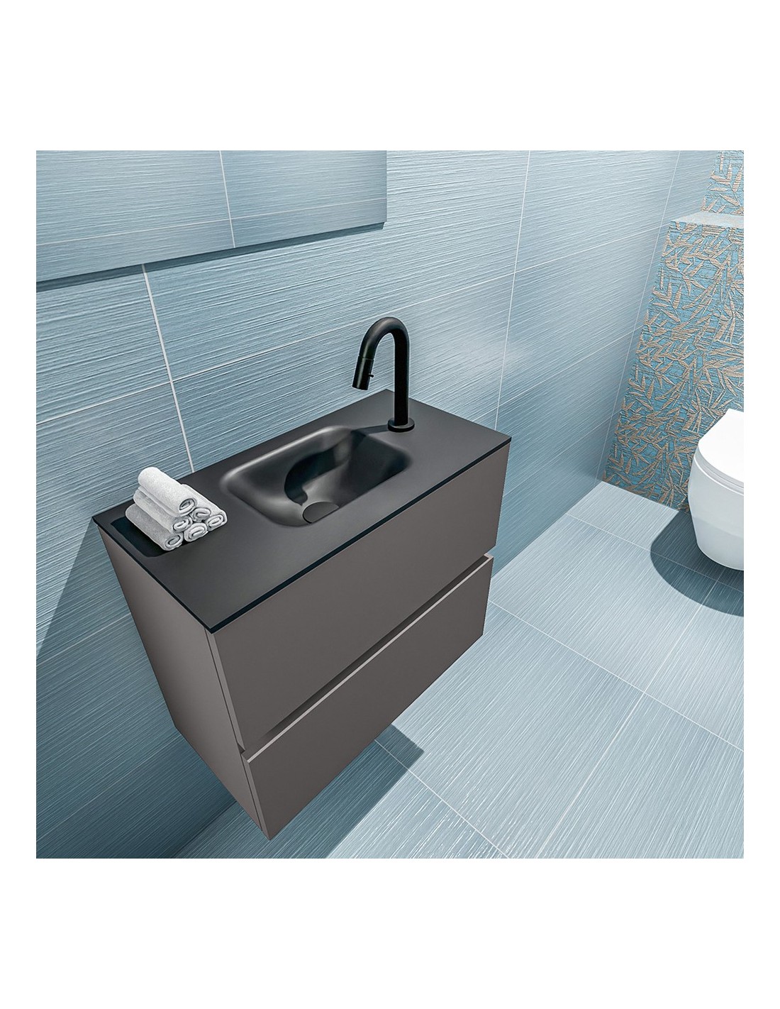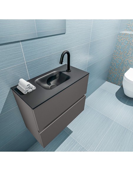 ADA Komplet badmiljø centreret håndvask B60 x H50 cm MDF - Mørkegrå/Sort