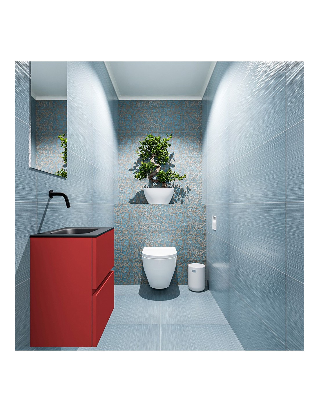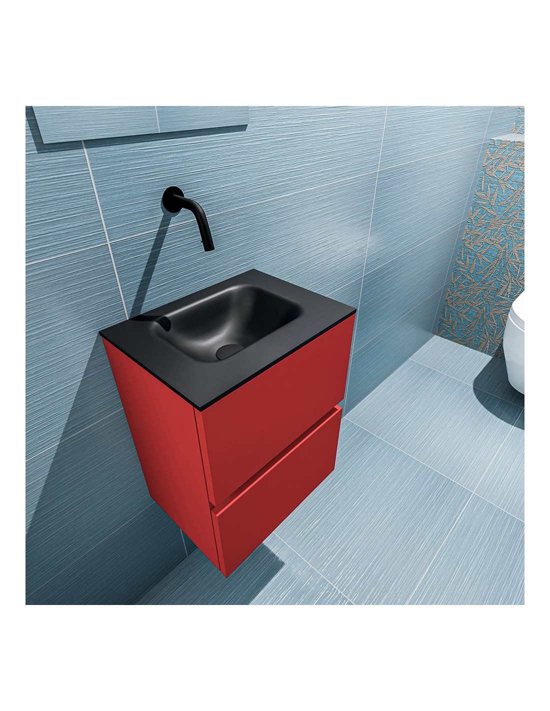 ADA Komplet badmiljø centreret håndvask B40 x H50 cm MDF - Rød/Sort