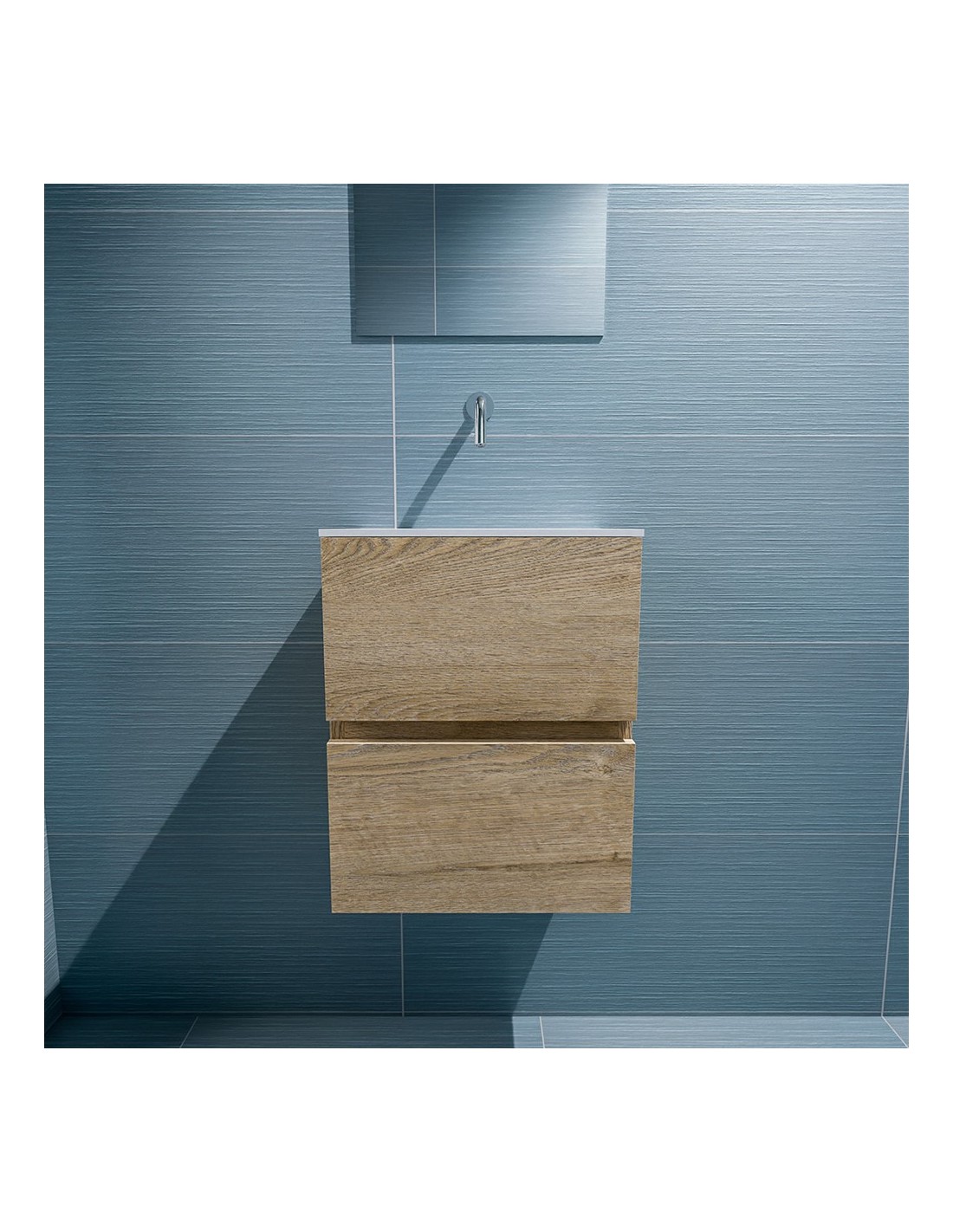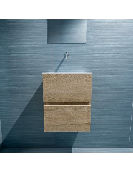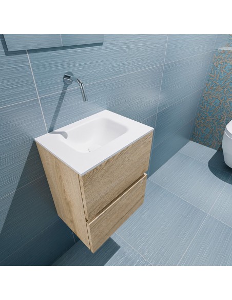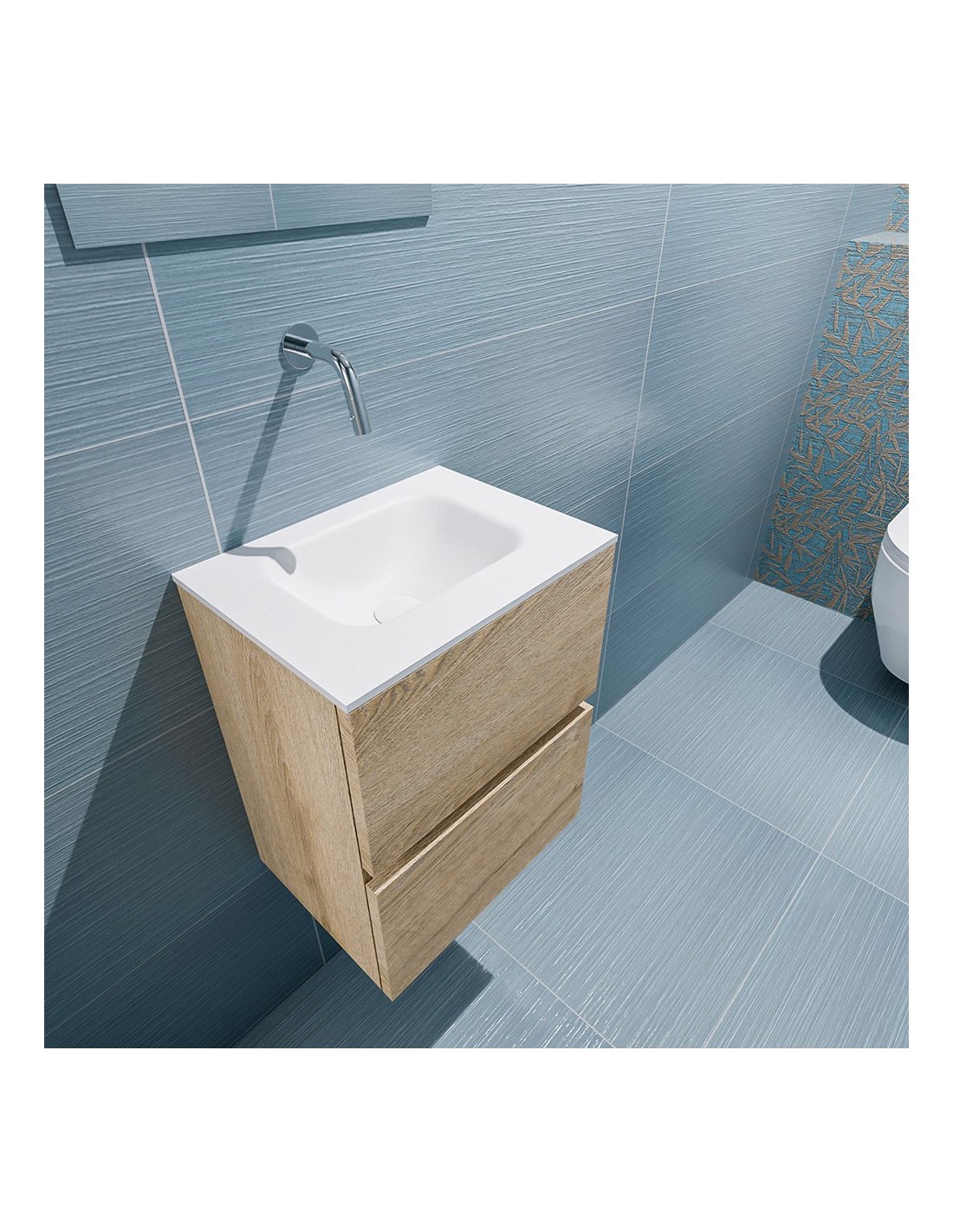 ADA Komplet badmiljø centreret håndvask B40 x H50 cm MDF - Vasket eg/Talkum
