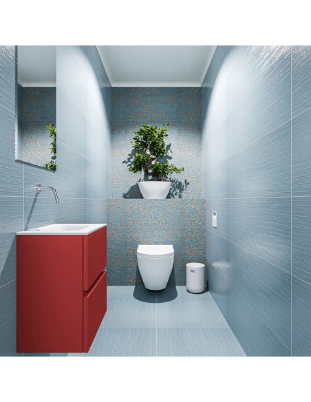 ADA Komplet badmiljø centreret håndvask B40 x H50 cm MDF - Rød/Talkum
