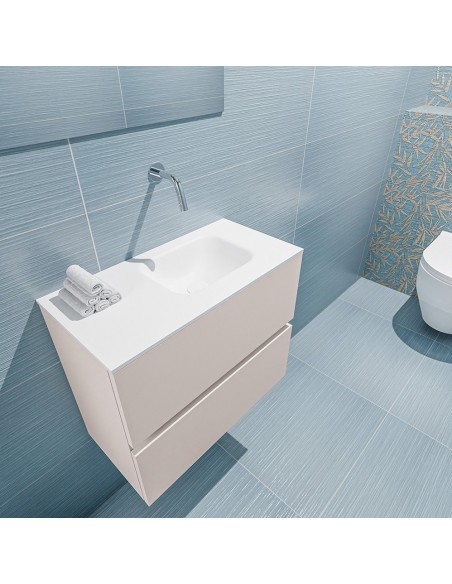 ADA Komplet badmiljø højrevendt håndvask B60 x H50 cm MDF - Linned/Talkum