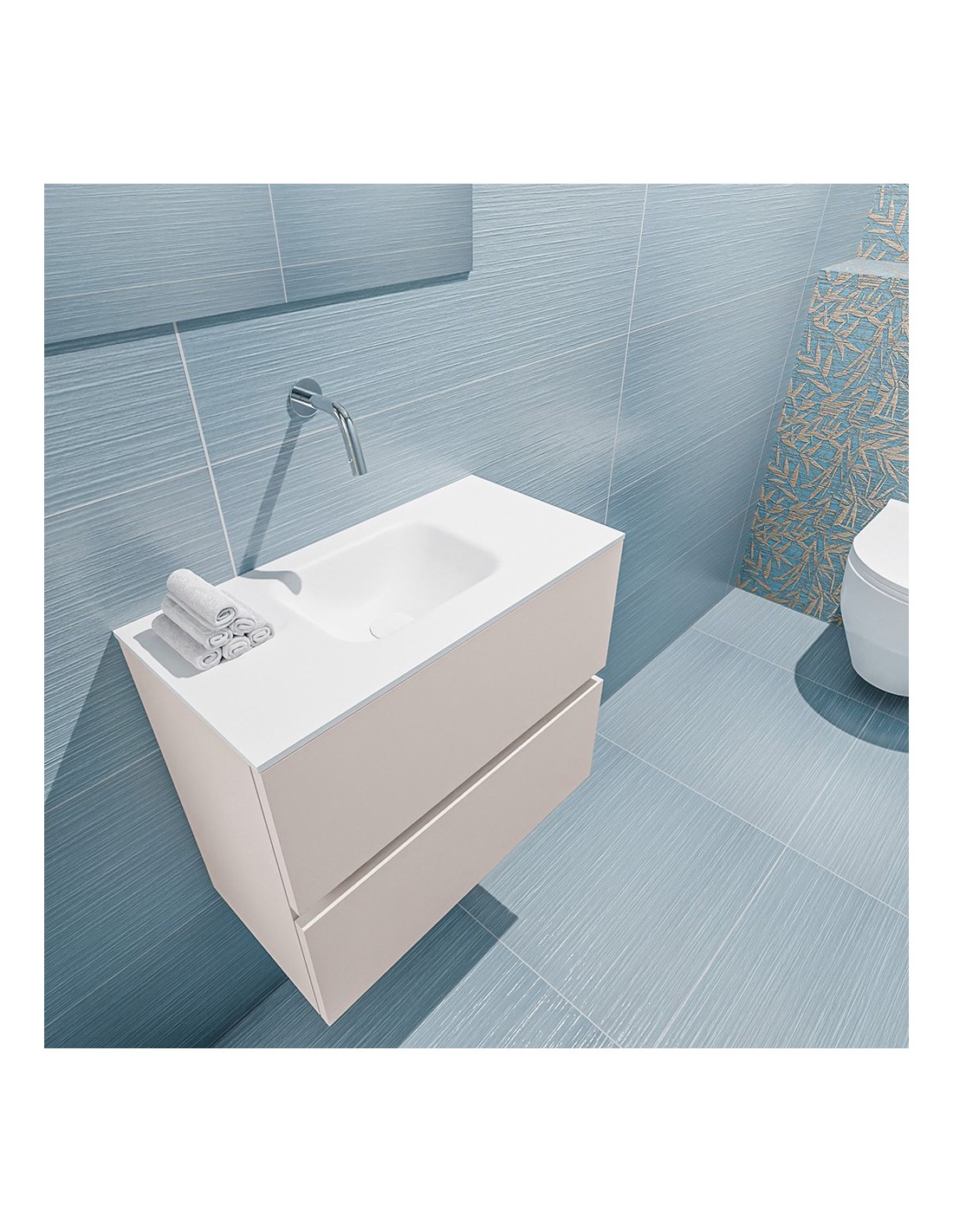 ADA Komplet badmiljø centreret håndvask B60 x H50 cm MDF - Linned/Talkum