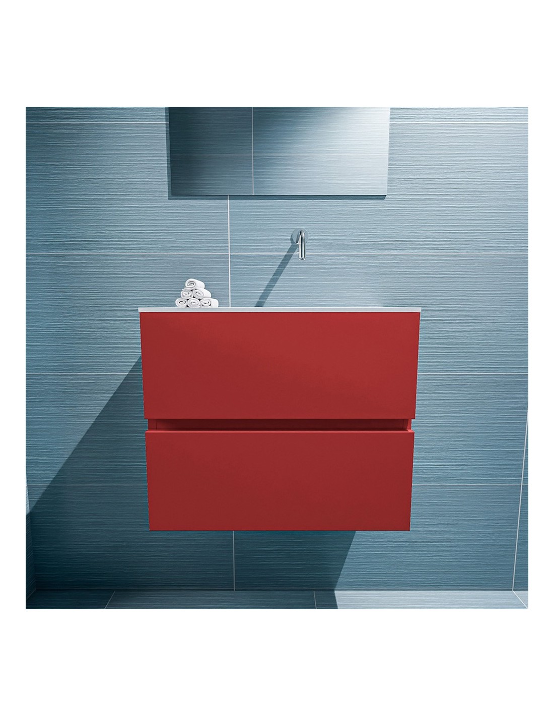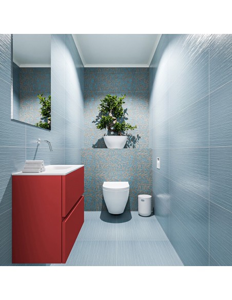 ADA Komplet badmiljø højrevendt håndvask B60 x H50 cm MDF - Rød/Talkum