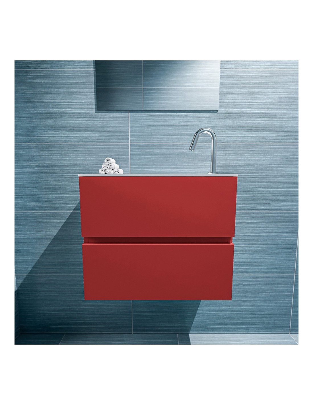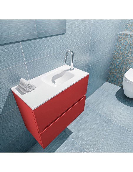 ADA Komplet badmiljø højrevendt håndvask B60 x H50 cm MDF - Rød/Talkum